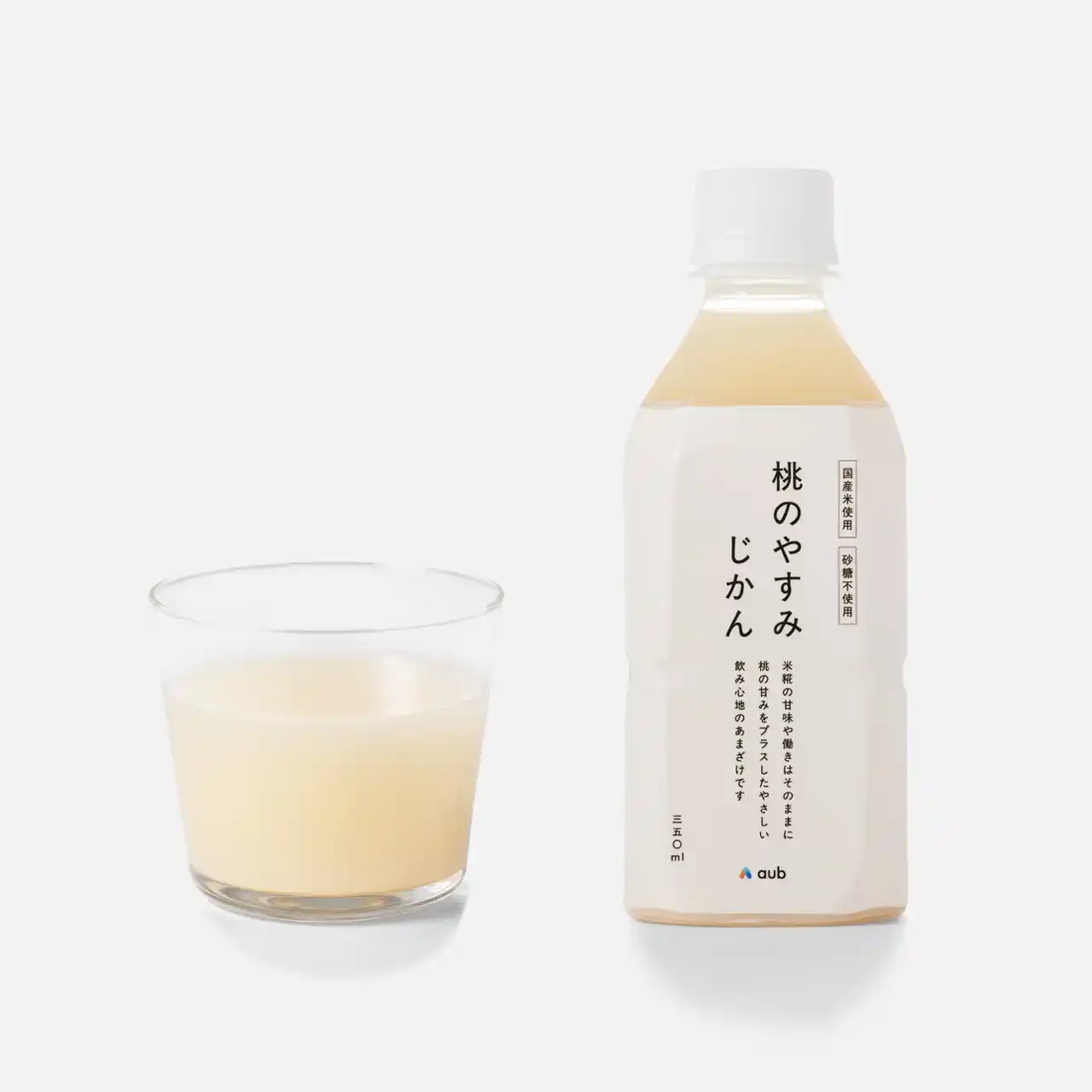 「桃のやすみじかん」(8本セットで税込2,990円/1本350ミリリットル)は、福島県の大野農園で採れた桃の果汁に、「米糀」を合わせてつくった、桃の優しい甘みがふんわり広がる甘酒です。「飲む点滴」と言われる「甘酒」は、栄養価の高い伝統的な発酵飲料です。「ブドウ糖」や「必須アミノ酸」「ビタミンB群」が多く含まれているため、疲労回復や栄養補給におすすめです。 |