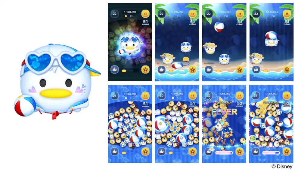 『LINE:ディズニー ツムツム』は、ディズニーのキャラクターを使ったディズニーストアのぬいぐるみ「TSUM TSUM」シリーズをテーマにしたカジュアルパズルゲームです。「ツム(ぬいぐるみ)」を3つ以上なぞって消していく手軽さや爽快感に加え、ディズニーキャラクターの愛らしいビジュアルが幅広いユーザー層から支持され、2014年1月29日に日本で先行公開以降、2014年7月1日にアメリカ・イギリスなどの欧米市場およびタイ・台湾などの東アジア市場を中心とする154の国と地域にて公開しています。2024年2月時点で、世界累計1億ダウンロードを突破しました。 |