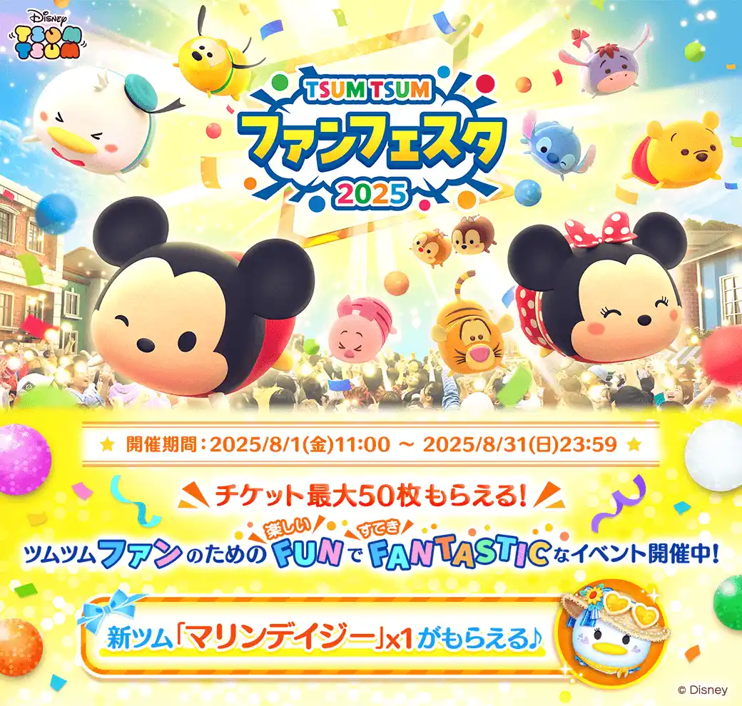 ■スキルチケットやアイテムチケットなどが最大50枚もらえる「ツムツム・ファンフェスタ 2025」スペシャルキャンペーン |