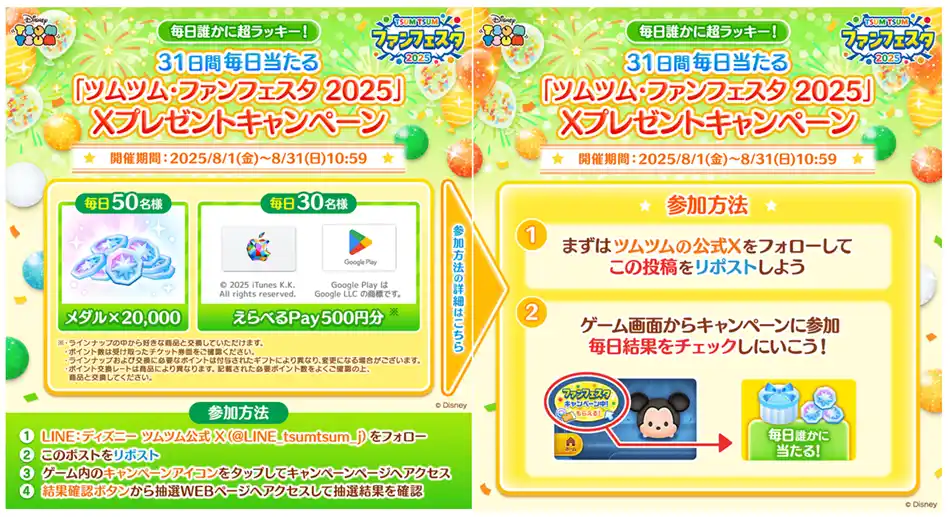■31日間毎日豪華賞品が当たる「ツムツム・ファンフェスタ 2025」Xフォロー&リポストキャンペーン |