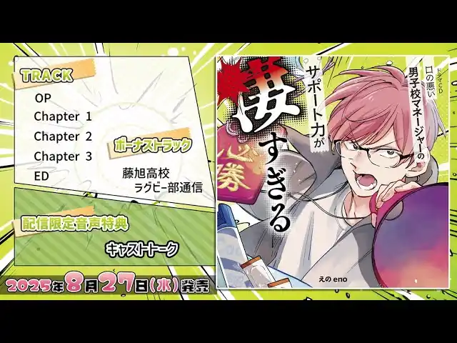 さらに、ボーナストラックとして収録されている「藤旭高校ラグビー部通信」や、配信限定音声特典のキャストトークも少しだけ試聴パートを公開しておりますので、こちらもお聴き逃しなく! |