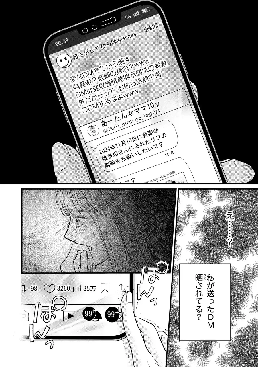 にもかかわらず、SNS上には見知らぬ誰かによって投稿された「晒し」画像と共に、誹謗中傷の嵐が巻き起こる。 |