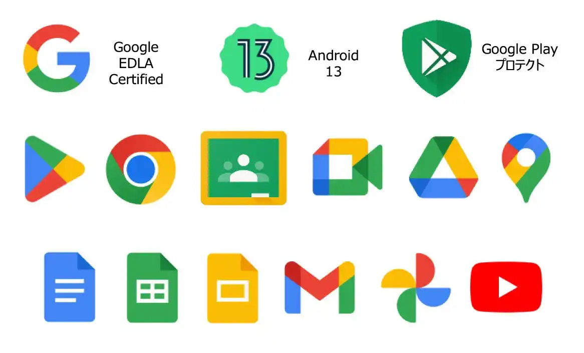 本機はGoogle EDLA認証された、Android OSを搭載しており、オンライン会議アプリをはじめ、Google Playストアから多様なアプリがインストールでき、大画面でありながらAndroidスマートフォンやタブレットのように利用できます。 |