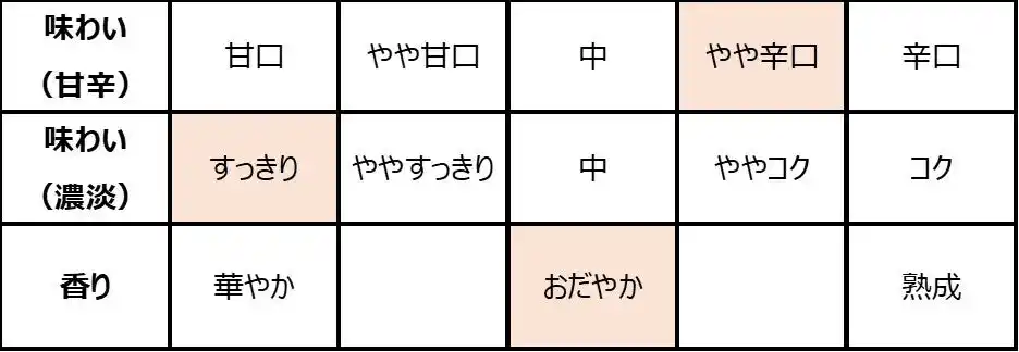 | 味わいの要素の調和がとれ、後味の切れの良い酒質 | |||
