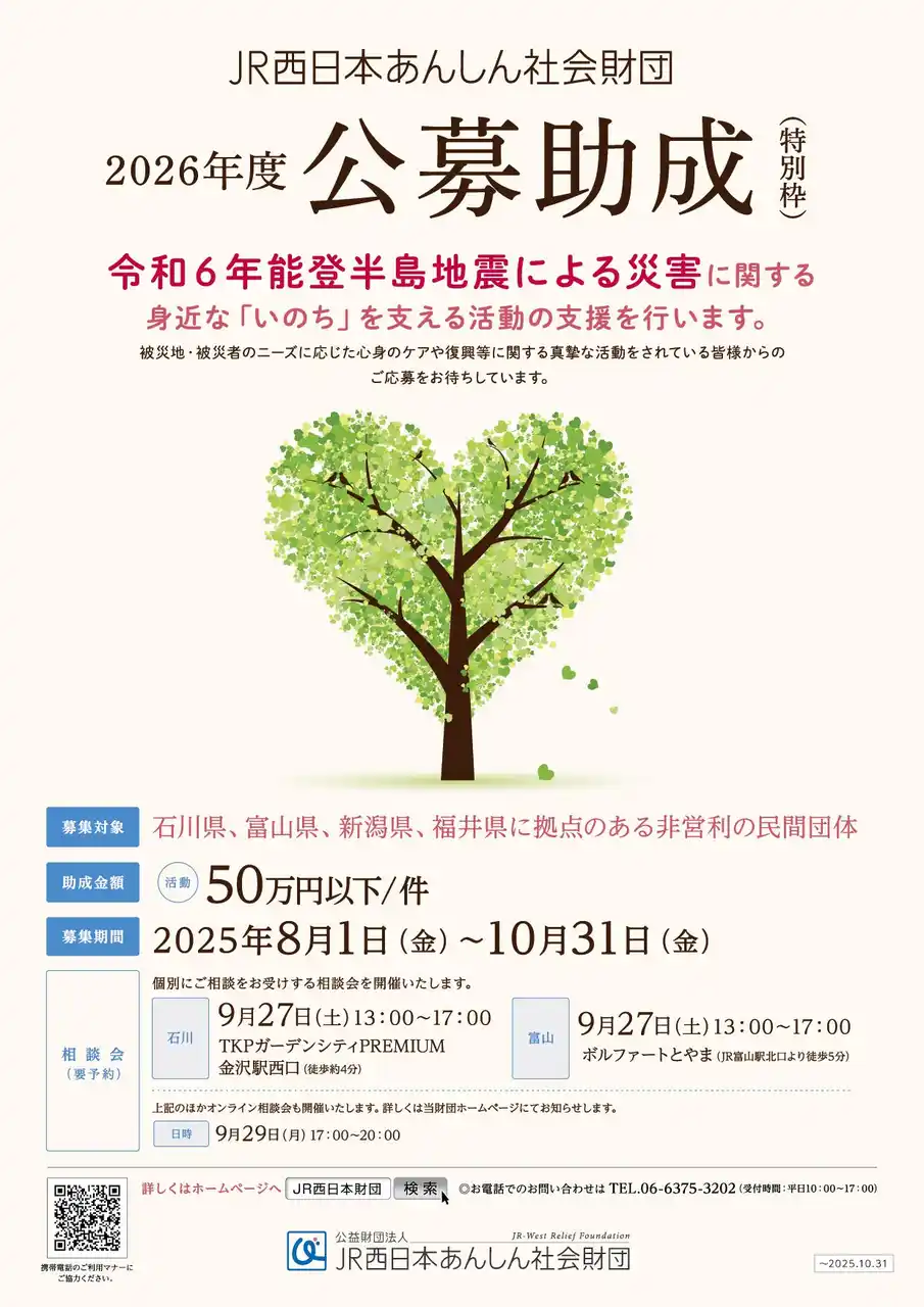 JR西日本あんしん社会財団は、「安全で安心できる社会」の実現に向け心身のケア、 |
