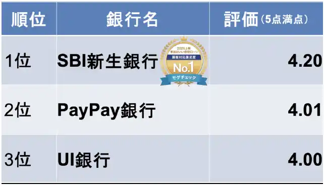 顧客満足度ランキングでは、SBI新生銀行が1位を獲得しました。「質問には1営業日以内に回答してくれる」「電話での対応も丁寧で分かりやすかった」「不明点や気になる点はしっかりと説明してもらえた」など、利用者から高い評価を得ています。手厚いサポート体制と迅速な対応が、多くの顧客満足につながっています。 |