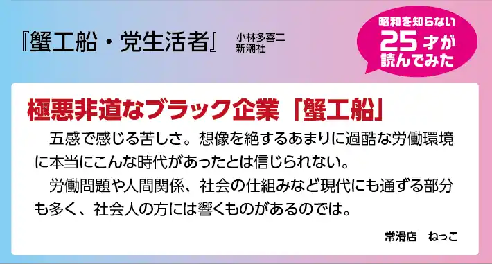 現代の若者が昭和という時代や歴史を知り、未来へと紡いでいく一助となることを目指します。また本企画を通じて、世代を超えた交流と新たな発見を生み出し、読書の楽しさをお届けしてまいります。 |