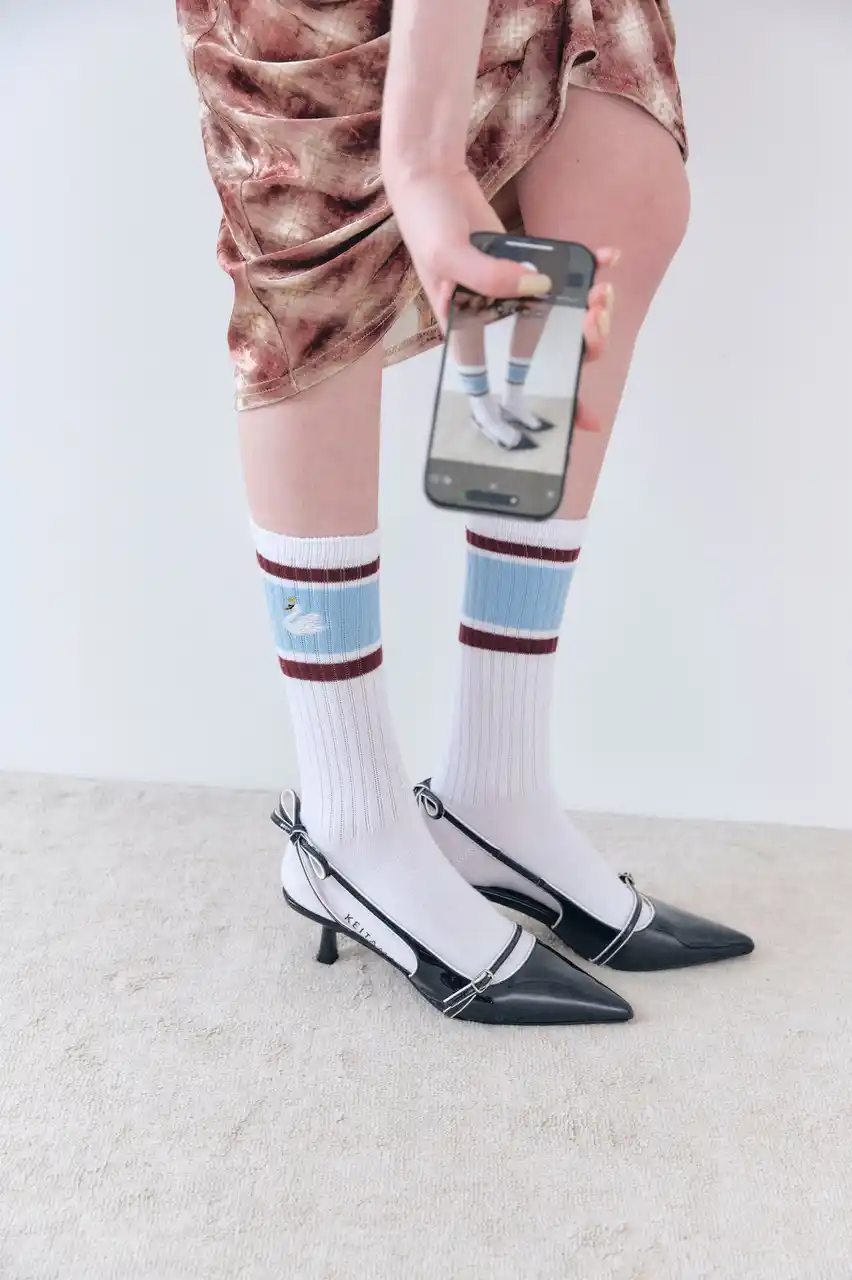 アイコニックなアニマル刺繍をワンポイントにしたソックスを |