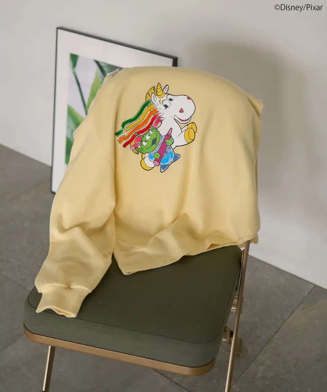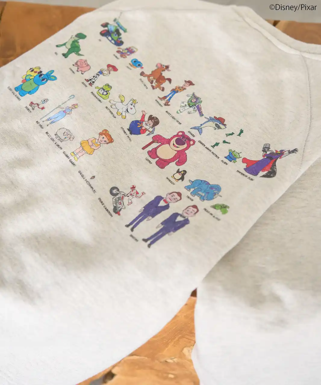 立体的なフロッキー加工でキャラクターをプリントしたプルオーバーは、全3型ラインアップ。歴代シリーズに登場するキャラクターを並べたバックプリントは、30周年の歴史を感じるオリジナルデザインです。そのほか、「ウッディ」と相棒の「バズ・ライトイヤー」が一緒に空を飛ぶ名シーンや、「リトル・グリーン・メン」とユニコーンのぬいぐるみ「バターカップ」が視線を合わせる姿をフロントにプリントしたデザインもご用意しております。 |
