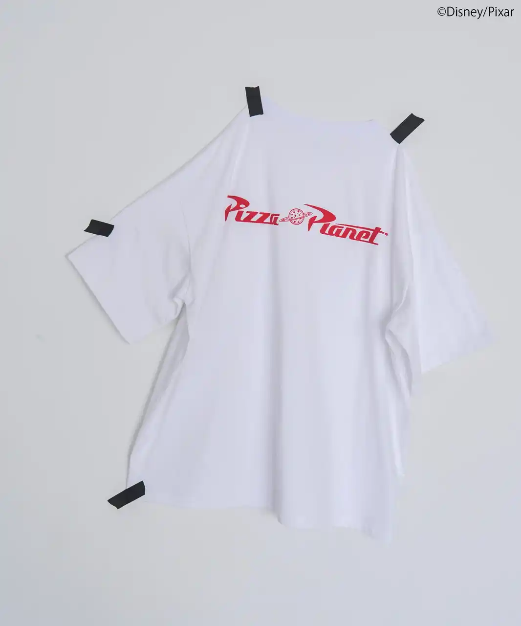 作中に出てくるファミリー向けのピザレストラン『ピザ・プラネット』をイメージしたシリーズでは、全5型をラインアップ。長袖Tシャツには、店内のクレーンゲームに入っていた「リトル・グリーン・メン」とピザを掛け合わせたポップなアートや、手書き風のオーダーメモをプリントと刺繍で施しました。ピザのMサイズがちょうど入るスクエア型のトートバッグは、「リトルグリーンメン」がピザを持ち上げる愛らしいプリントを採用。また、ロゴ入りのシンプルな半袖Tシャツやキャップも取り揃えております。 |