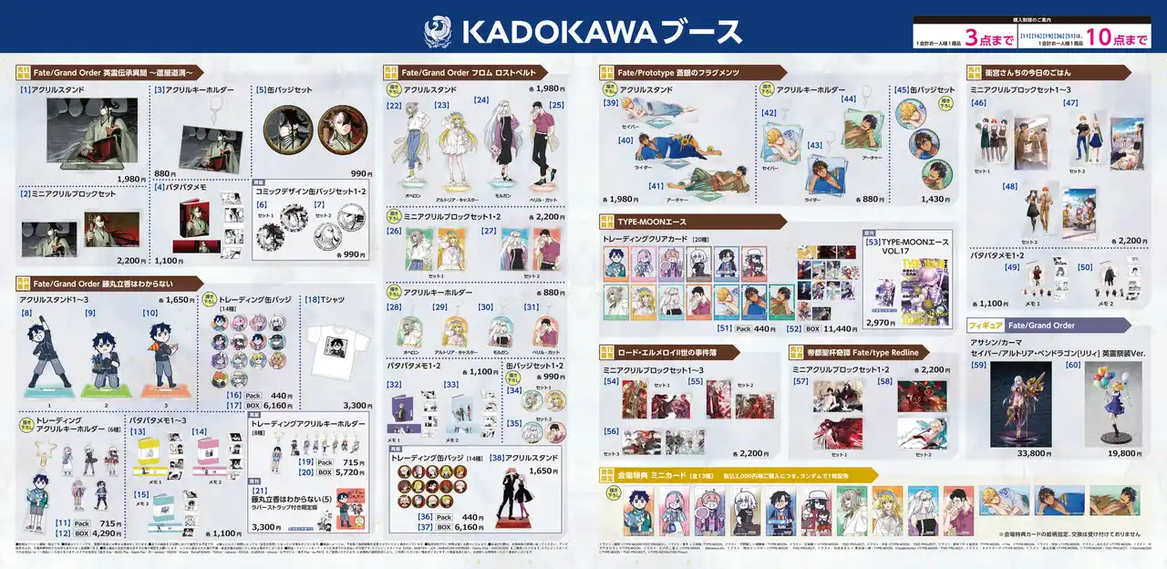 株式会社KADOKAWA(本社:東京都千代田区、取締役 代表執行役社長 CEO:夏野剛)は、2025年8月2日(土)、3日(日)に開催された「Fate/Grand Order Fes. 2025 ~10th Anniversary~」にて会場先行販売が行われたグッズをカドスト内「Newtype Anime Market」とキャラアニ内「Newtypeコーナー」にて予約受付を開始!!「Fate/Grand Order 藤丸立香はわからない」、「Fate/Grand Order フロム ロストベルト」「Fate/Prototype 蒼銀のフラグメンツ」の新規描き下ろし商品など豪華商品が盛りだくさん!!来場が難しかった方や、会場で入手することが出来なかった方も、この機会に是非入手してください! |