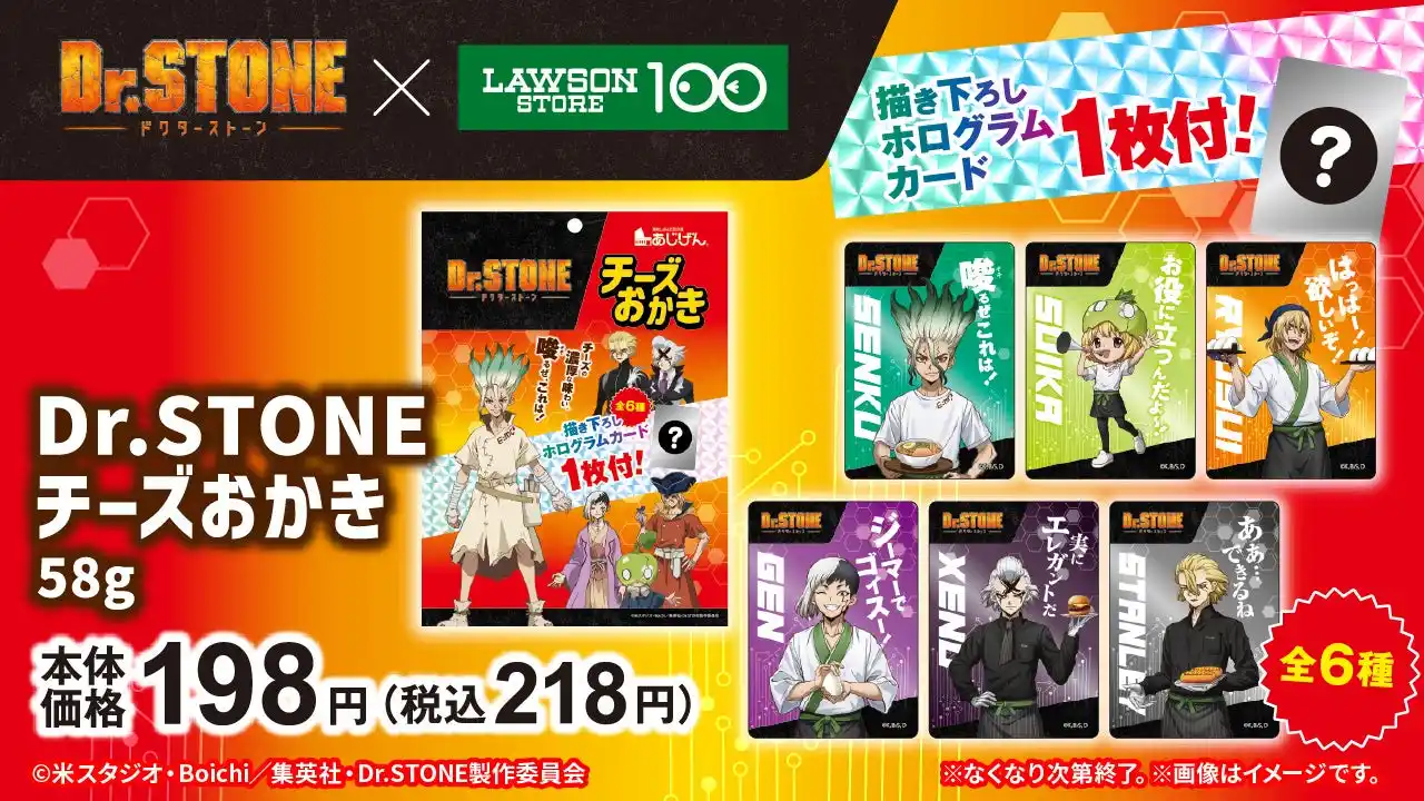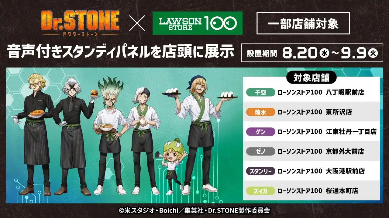 株式会社ローソンストア100(神奈川県川崎市)が運営する「ローソンストア100」(634店舗/2025年6月末現在)では、新ストアコンセプト「あたらしい・おいしい・うれしい」の「うれしい」の一環として、人気TVアニメ『Dr.STONE』とコラボレーションしたキャンペーンを展開します。本企画では、「科学×冒険」という作品の魅力をローソンストア100ならではの商品や企画でお届けします。