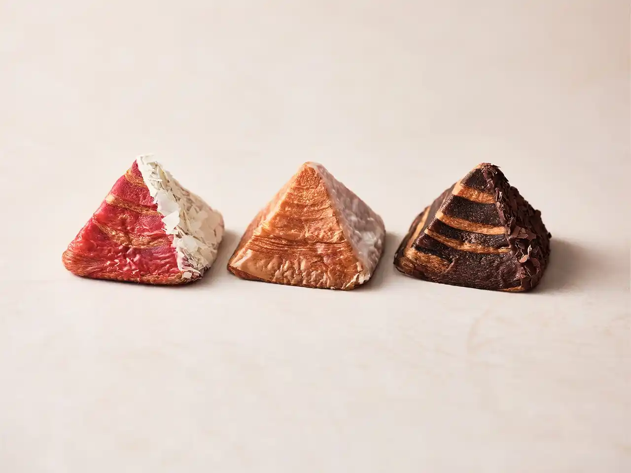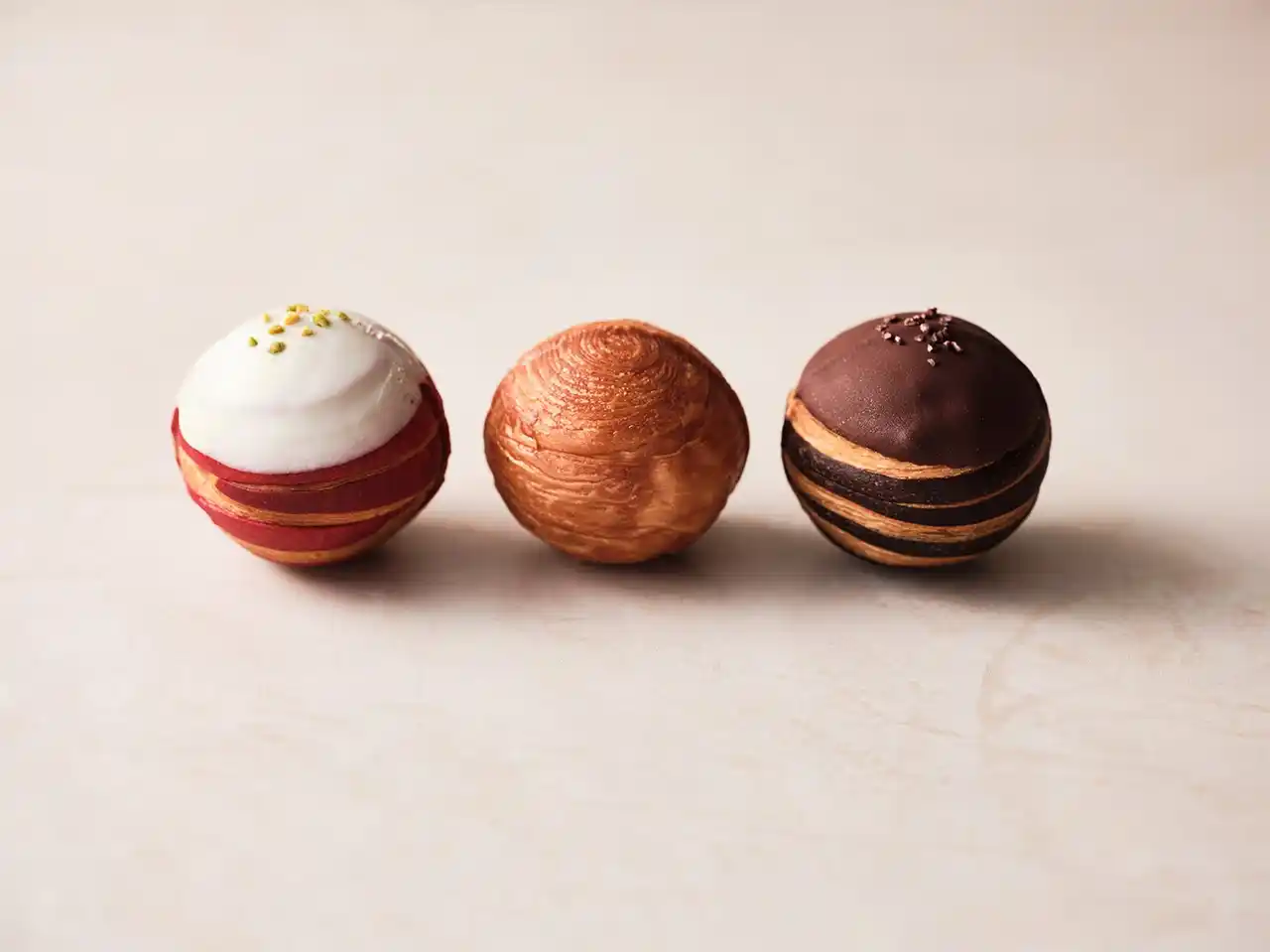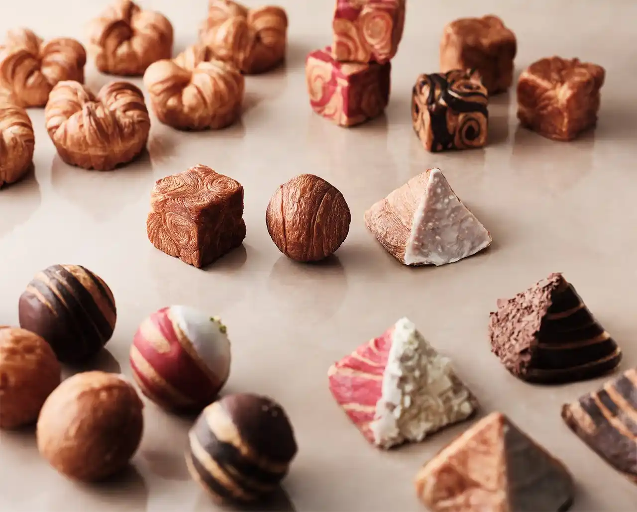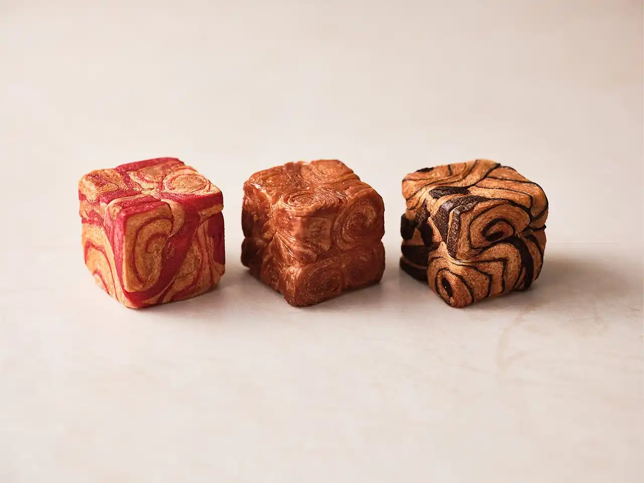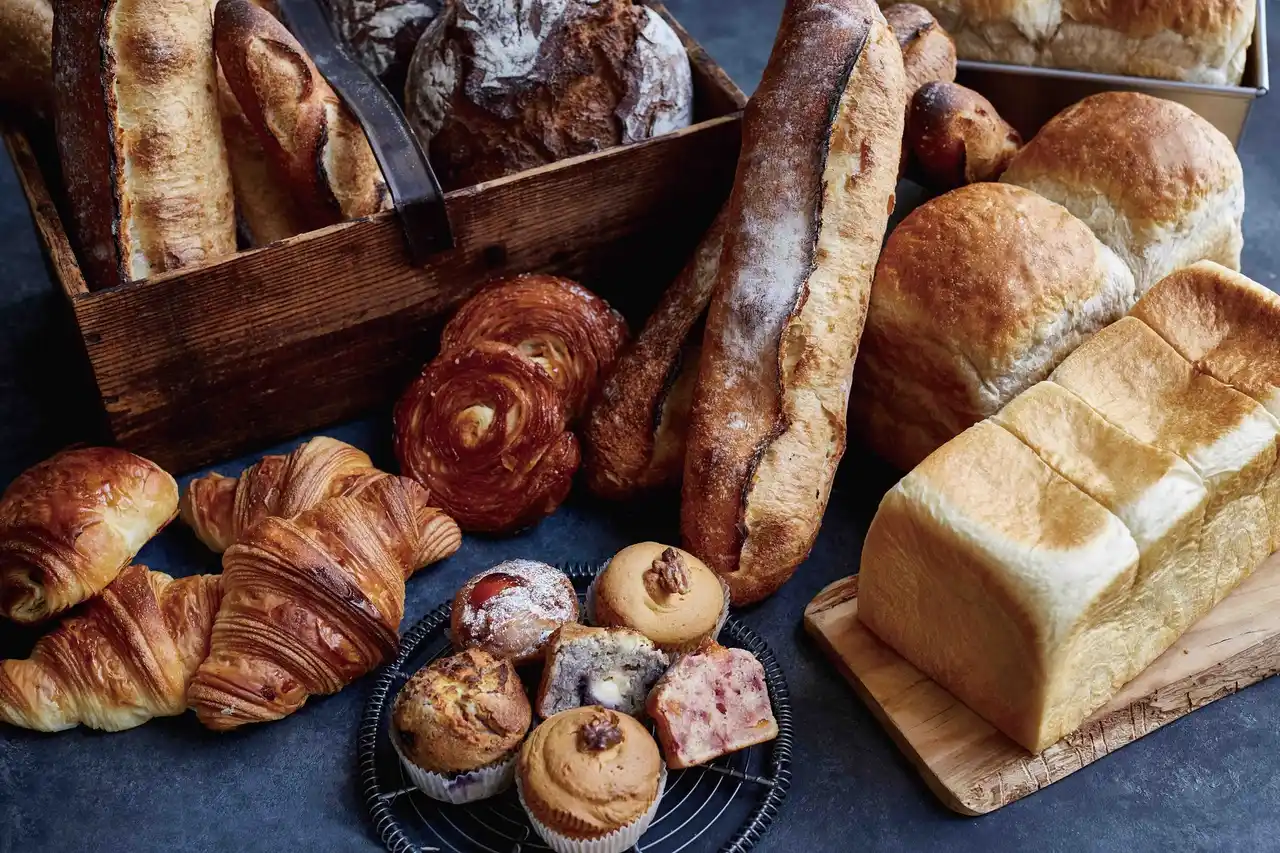| 看板商品のクロワッサンには、◯・△・□といった形状のバリエーションを取り入れ、見た目から楽しめる新たな提案を行います。さらに、サワードゥやスヴィンゴールドなど、オールスクラッチで仕上げる本格ハード系パンを豊富にご用意。小麦の選定から成形まで、一つひとつに職人の手仕事が光ります。 | ||||||||||