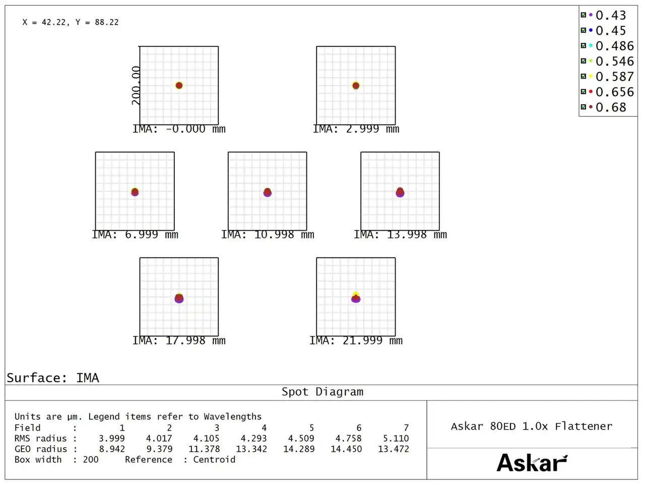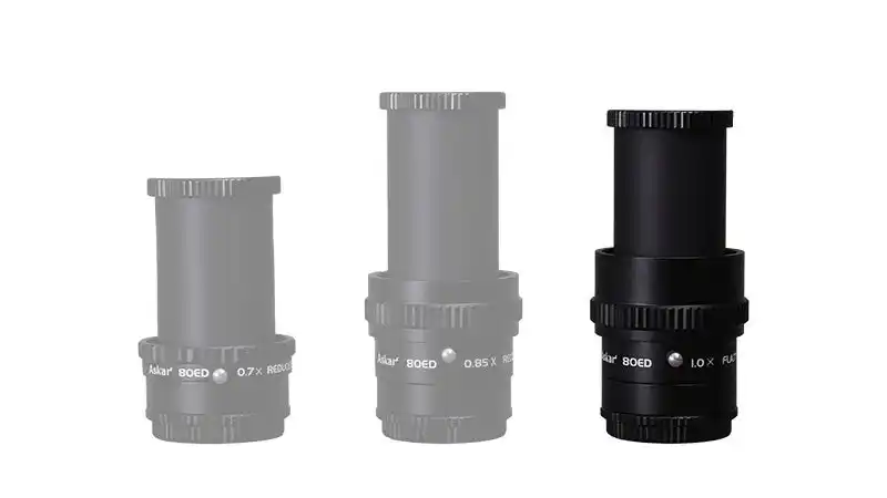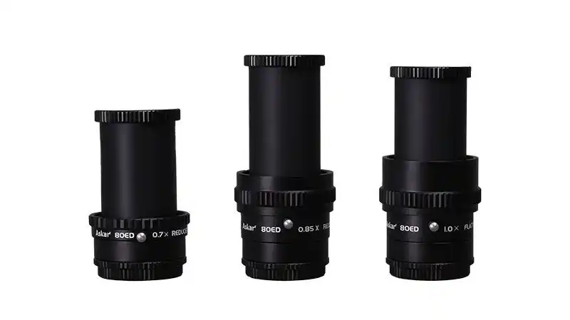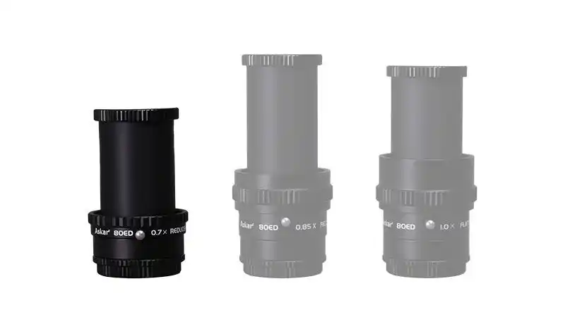 Askar 80ED専用に設計された、APS-C対応のフラットナーレンズです。焦点距離を0.7倍に短縮し、像面湾曲を補正することでイメージサークルの端までピントの合ったシャープな像を得ることが可能です。 |
