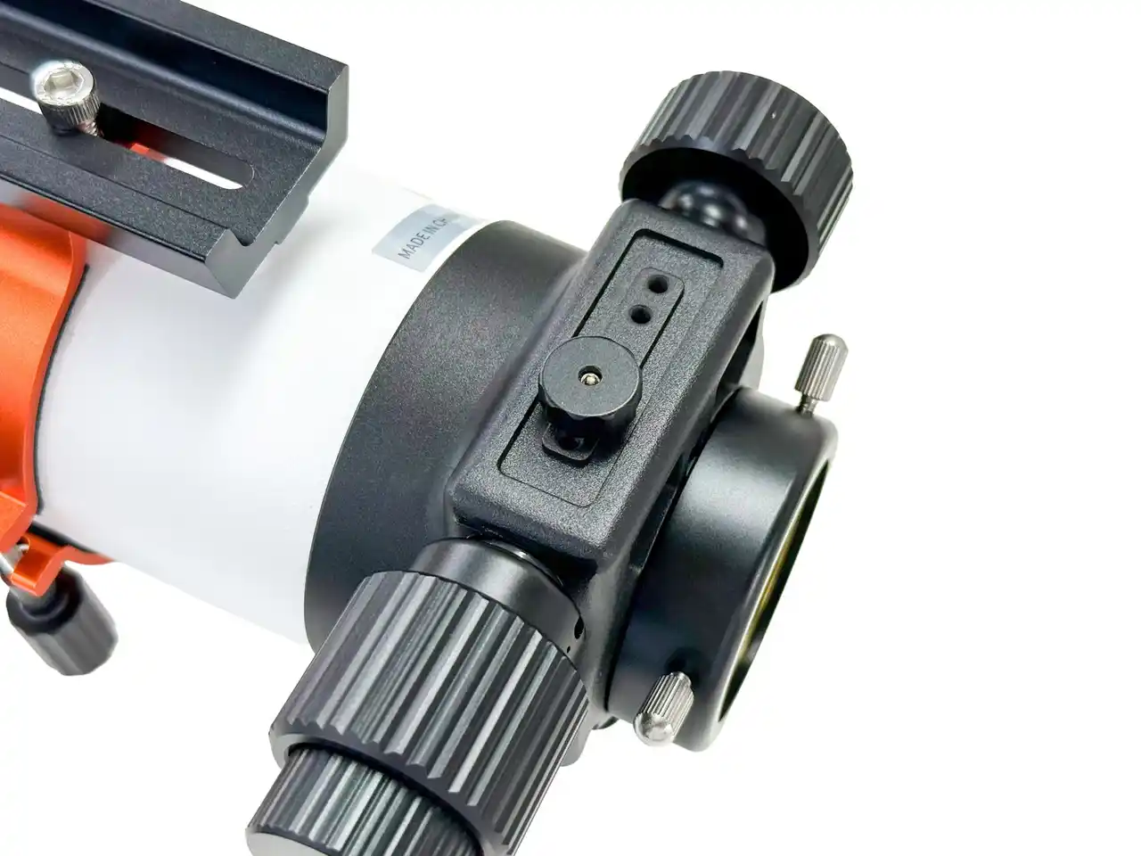 正確で精密なピント合わせをおこなうためのデュアルスピード・ラックアンドピニオンフォーカサーを搭載しています。また、ZWO社のEAFなどの社外製電動フォーカサーとの接続も可能です。 |