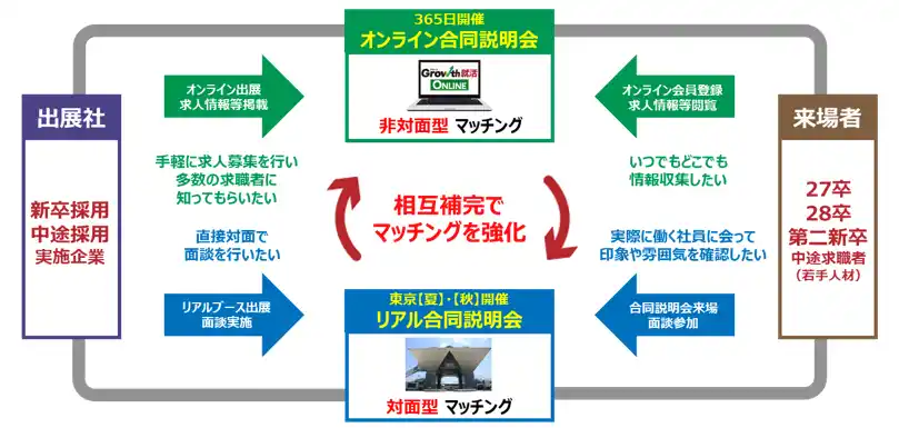 Growth就活DXPO / Growth転職DXPO のハイブリッド型開催モデル |