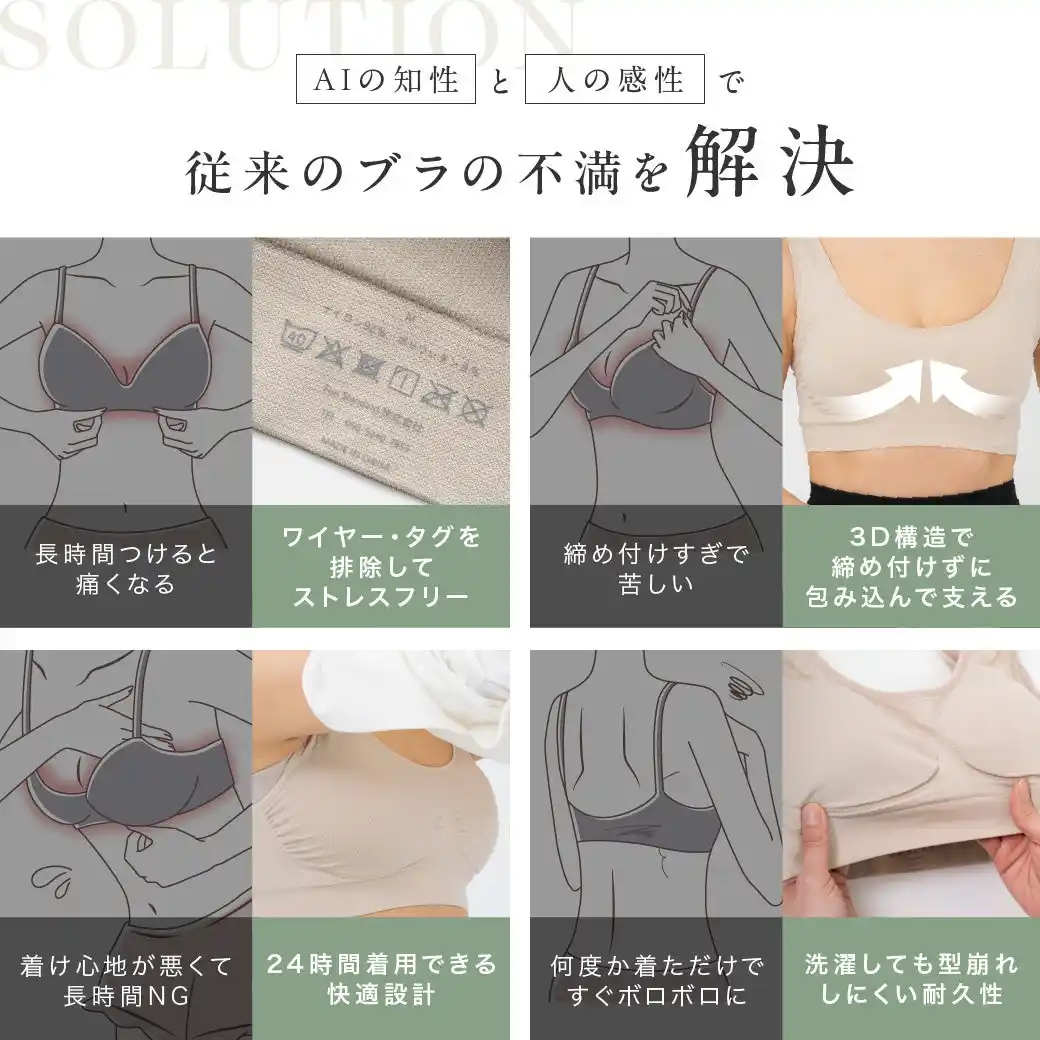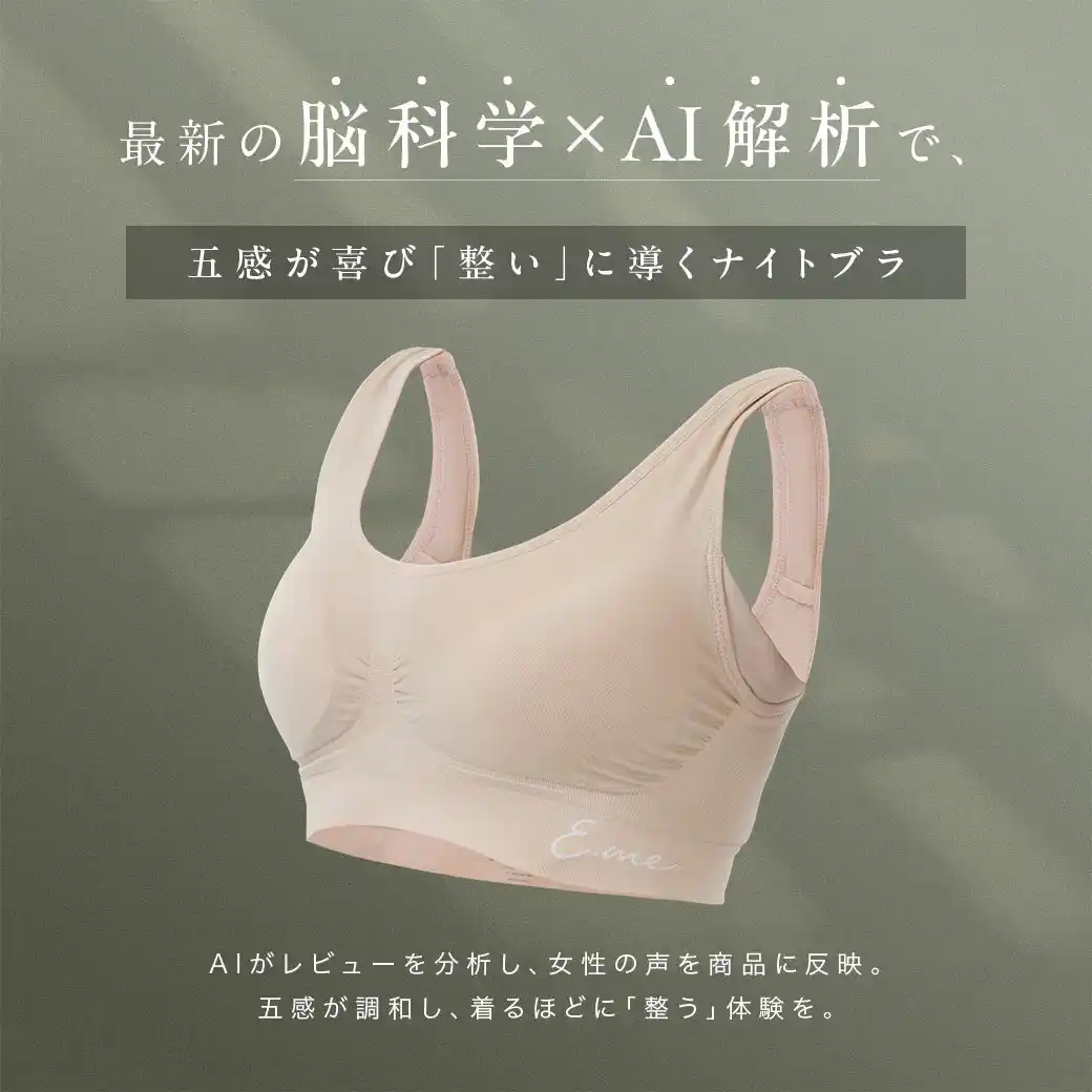 今までのナイトブラは「盛る」ことが目的でした。 でもE.meは違います。 科学とAIの力で、あなたの身体と心のバランスを「整える」ことを最優先に考えました。 |