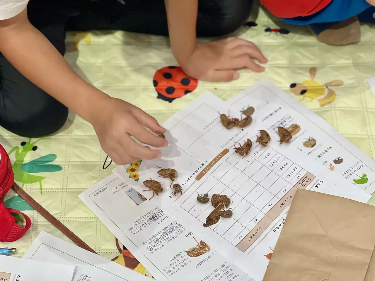 ぬけがらから見える自然のふしぎに、子どもたちは夢中になって取り組んでいました。 |