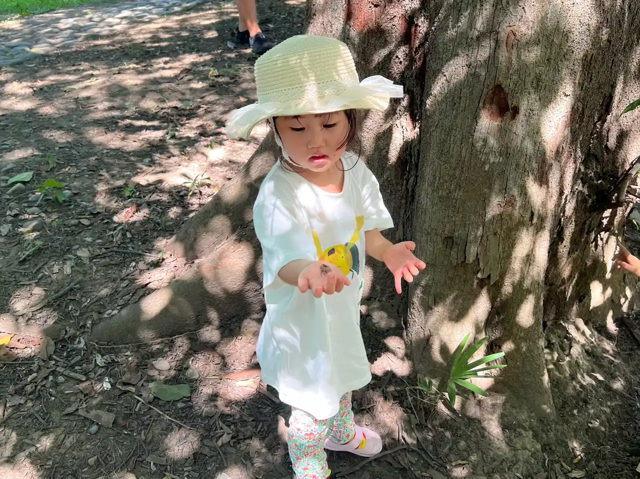 低い木の幹や葉の裏、高い枝先など、さまざまな場所で見つけることができ、子どもたちは目を輝かせながら観察を楽しんでいました。 |