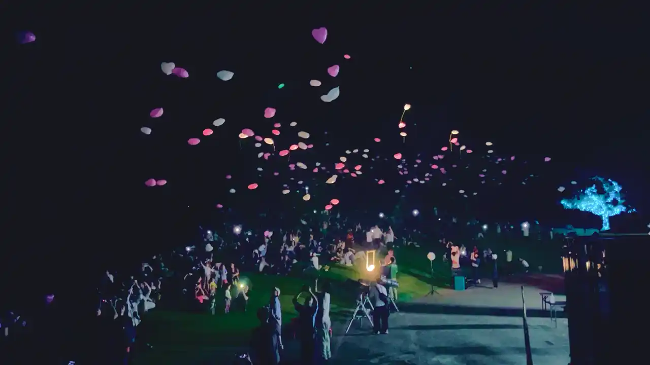 星空の巡りではバルーンリリースが行われます。風船に願い事を書いて一斉にリリースします。 |
