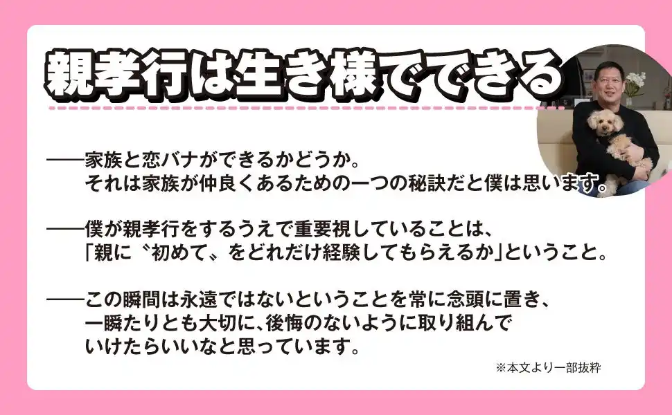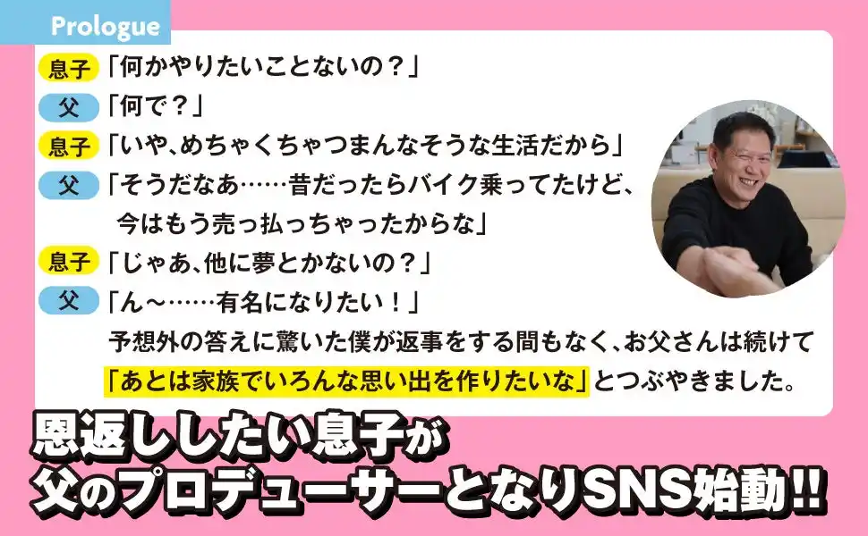 本書では、SNSでバズって有名になるために、父に恩返しをするために、息子が見つけた“親孝行の形”を全て明かしています。 |