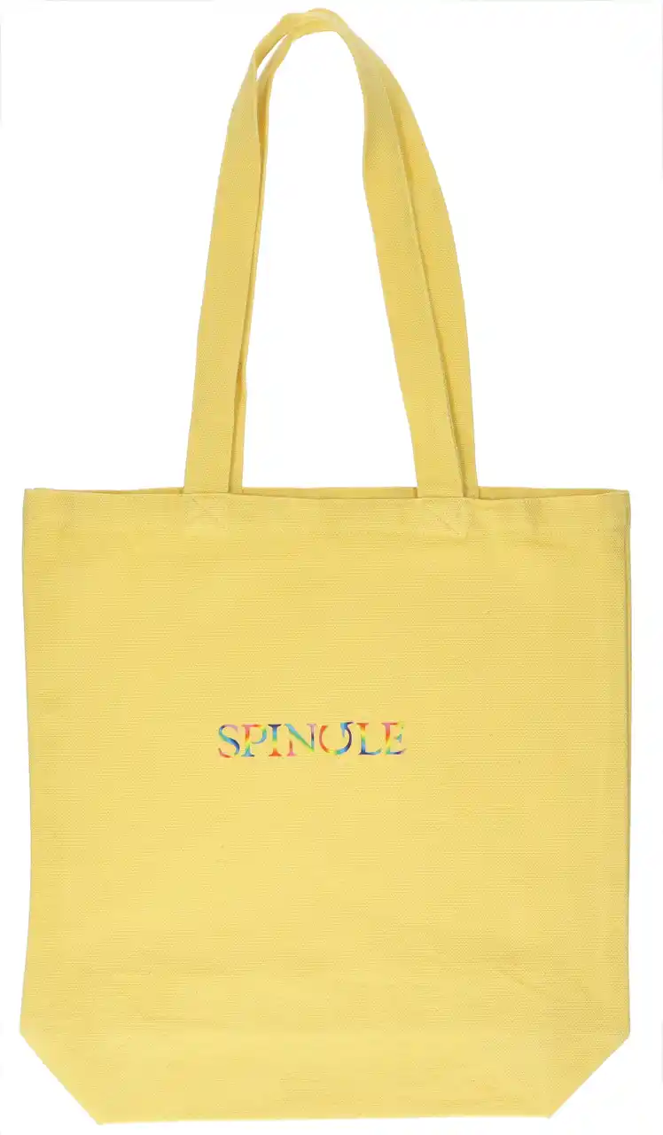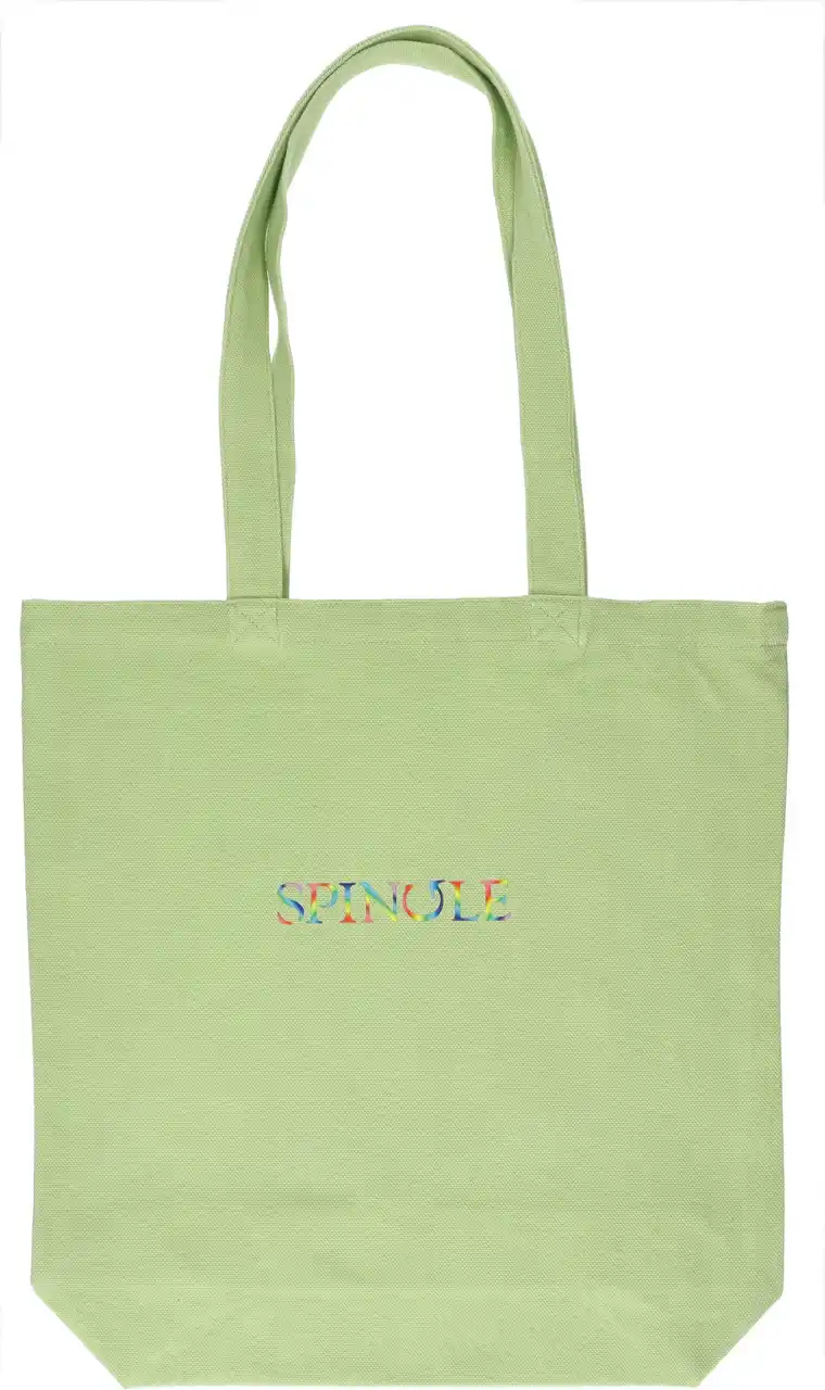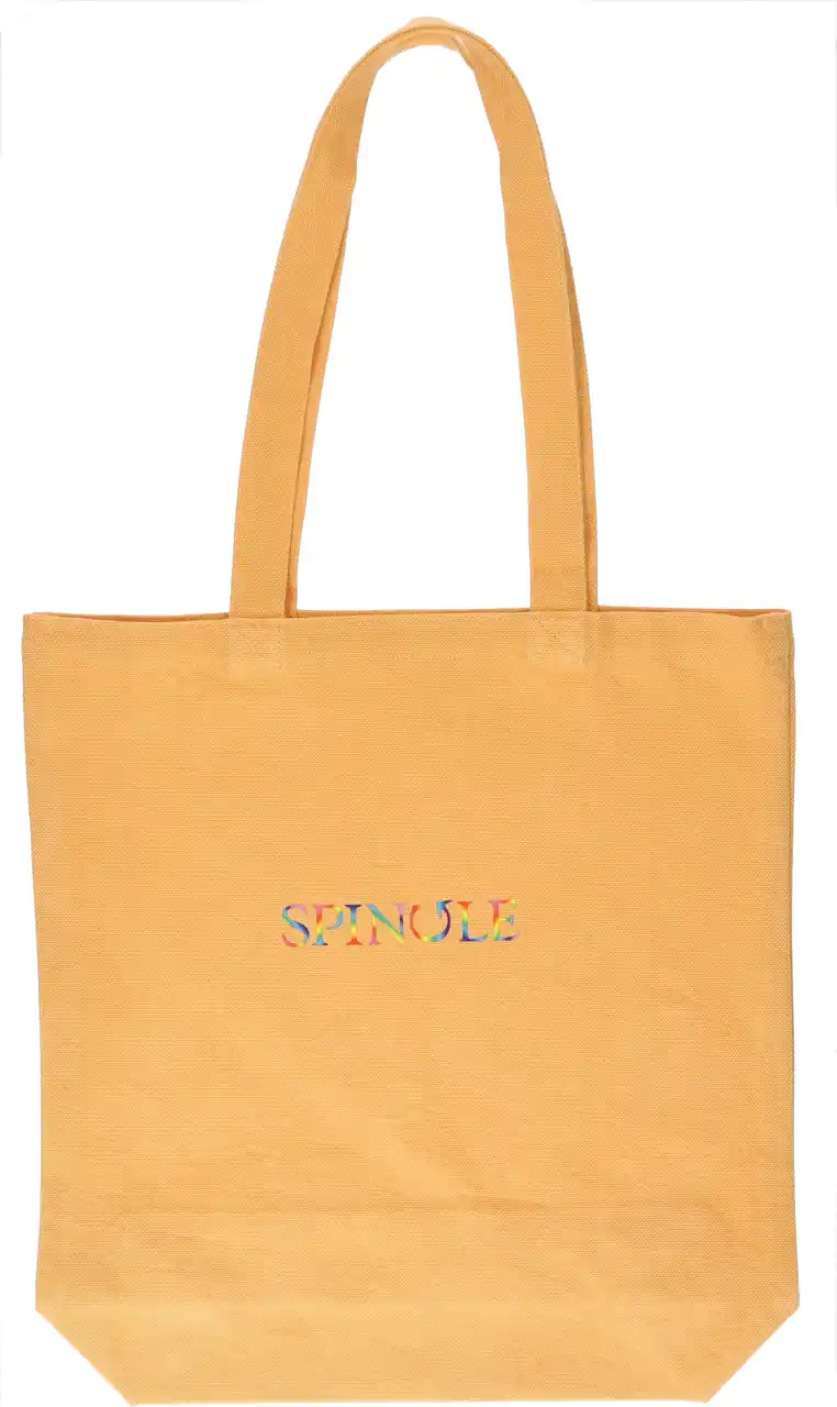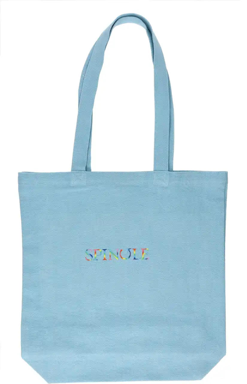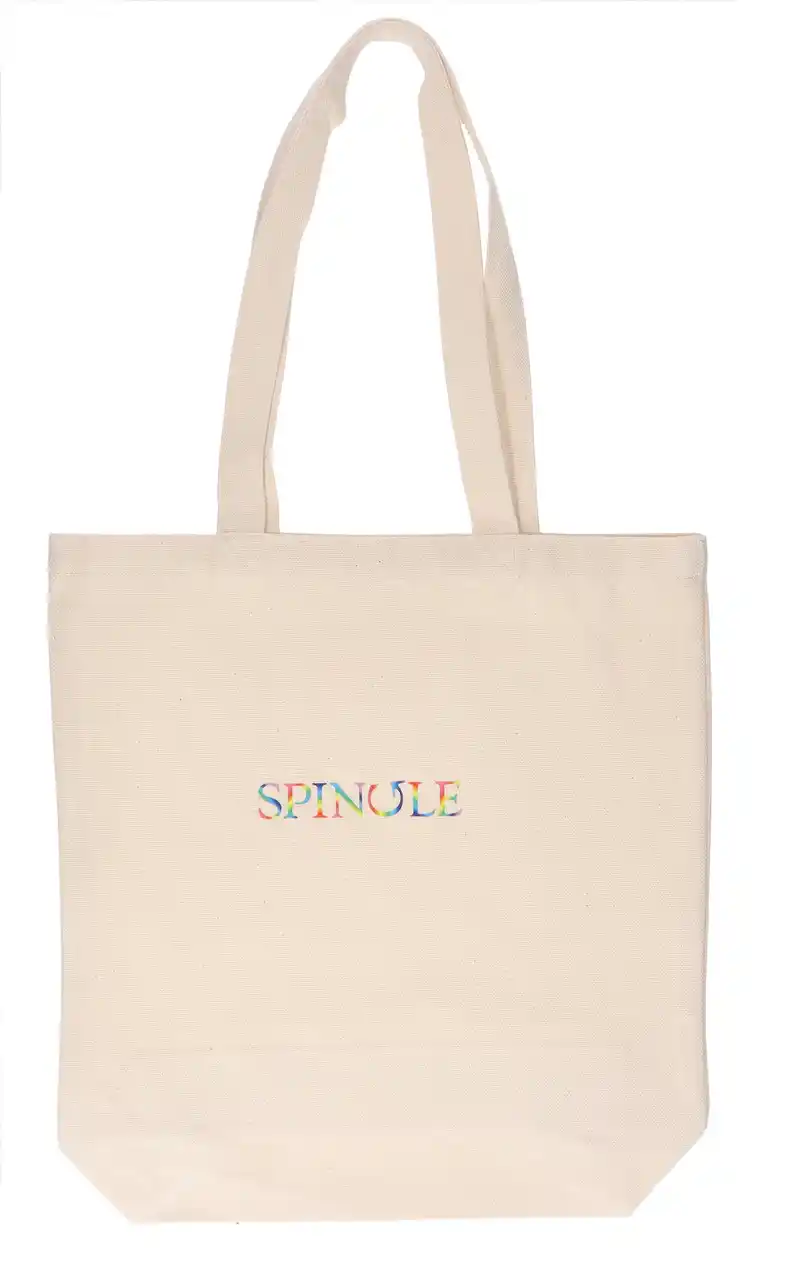 また、色名は日本に古来より伝わる伝統色を付けました。生地は、折り鶴から再生した「折り鶴レーヨン糸※」を活用した丈夫なキャンバス生地です。紡績や製織、染色は広島県福山市内の工場で生産しており、染色工程で洗いがかかったやわらかな風合いが特徴です。表面には虹色のSPINGLEロゴ、裏面には「Make a Circle」に込めた想いを英語で綴った文章をプリントしています。 |
