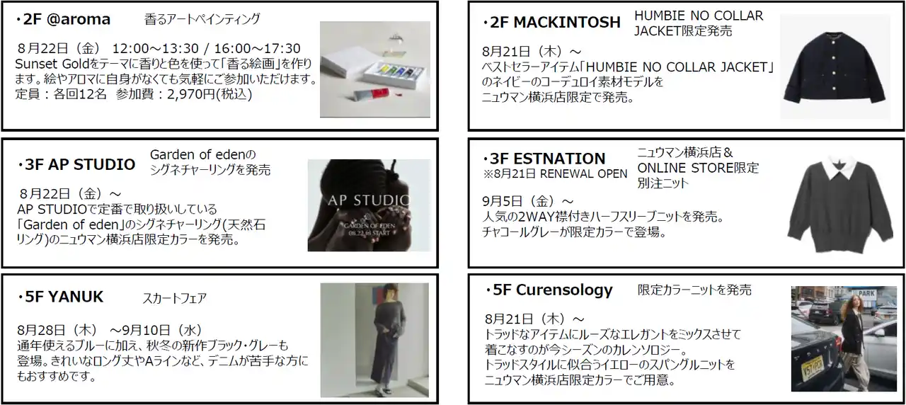 ・その他、各ショップで秋ファッションを先取りする2025AW先行受注会やニュウマン横浜店限定商品を発売 |