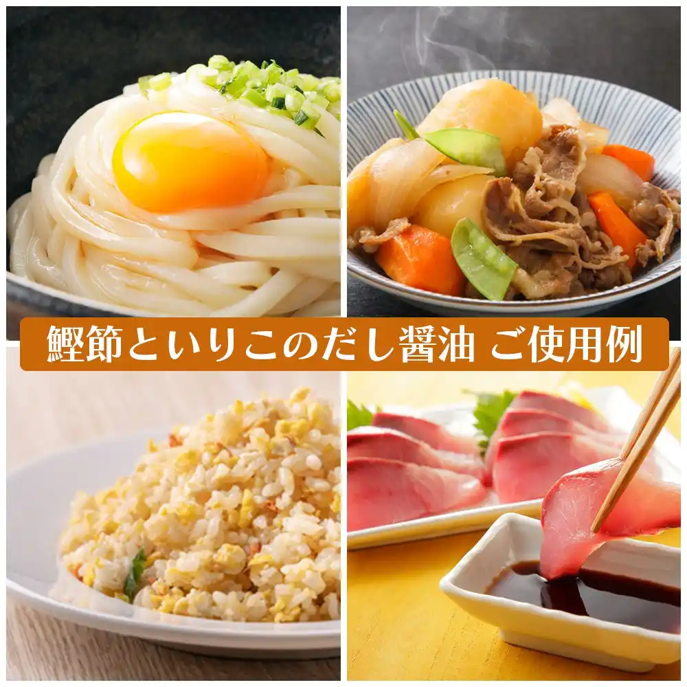 かけ醤油としてはもちろん、煮物・炒め物・お吸い物など幅広い料理に。だしの旨みとまろやかさが、いつもの料理をワンランクアップさせます。 |