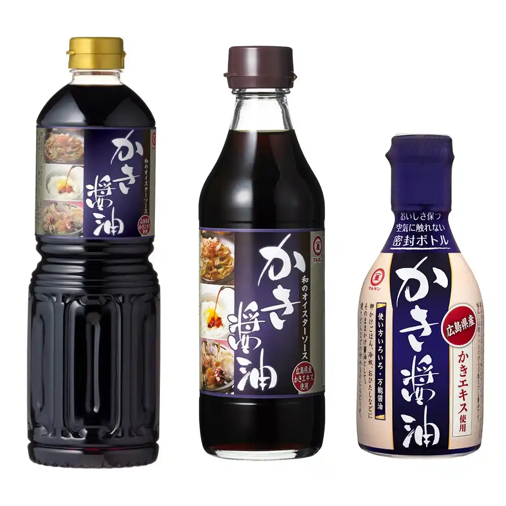 姉妹品として販売中の「マルキン かき醤油」は、広島県産のかきの旨みにかつおの風味と魚醤を加え、味に深みを持たせた万能だし醤油です。 お客様から販売店に関するお問い合わせを多くいただく、当社の人気商品でもあります。 和風のオイスターソースとしても活用できるこの商品を、ぜひ一度お試しください。 |