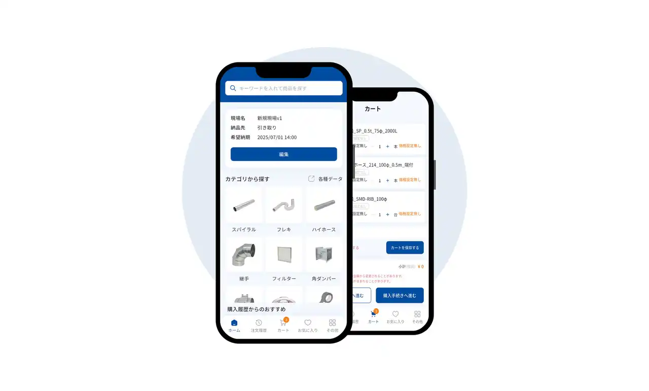 「DuctCloud」をいつでもどこでも、スマートフォンで利用できるようになります。iOS・Androidの両方に対応予定で、外出先や現場からの発注・確認もその場でスムーズに。アプリストアでの公開後には、ぜひダウンロードしてご活用ください。 |
