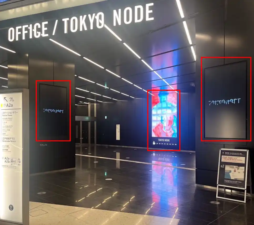 展示場所 :虎ノ門ヒルズ ステーションタワーB2階(オフィス/TOKYO NODE行きシャトルエレベーター入口前サイネージ) ※第2回以降の展示では、虎ノ門ヒルズ内の他のサイネージへと順次拡張予定 |