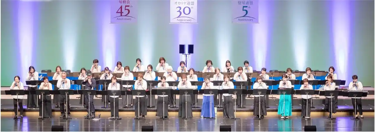 このイベントは、弊社が日本全国でアクティブシニア向けの音楽教室を運営している「琴修会」「ライリッシュ・オカリナ連盟」「ライリッシュ・竪琴連盟」(以下、ライリッシュ・グループ)の3団体合同で開催し、それぞれ大正琴、オカリナ、竪琴の楽器演奏を行います。 |