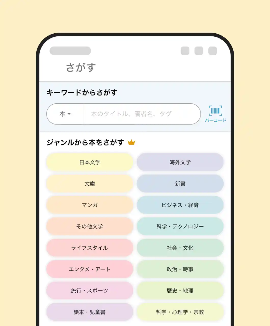 これまでブクログでは、キーワードやバーコードを使って本を探すことができました。今回のアップデートからは、ブクログ独自のジャンルで本を探すこともできるようになりました。 |