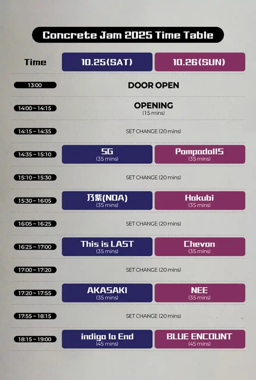 ・イベント名:Concrete Jam 2025 ・開催日:2025年10月25日(土)・26日(日) ・会場:KBSアリーナ(韓国・ソウル) |