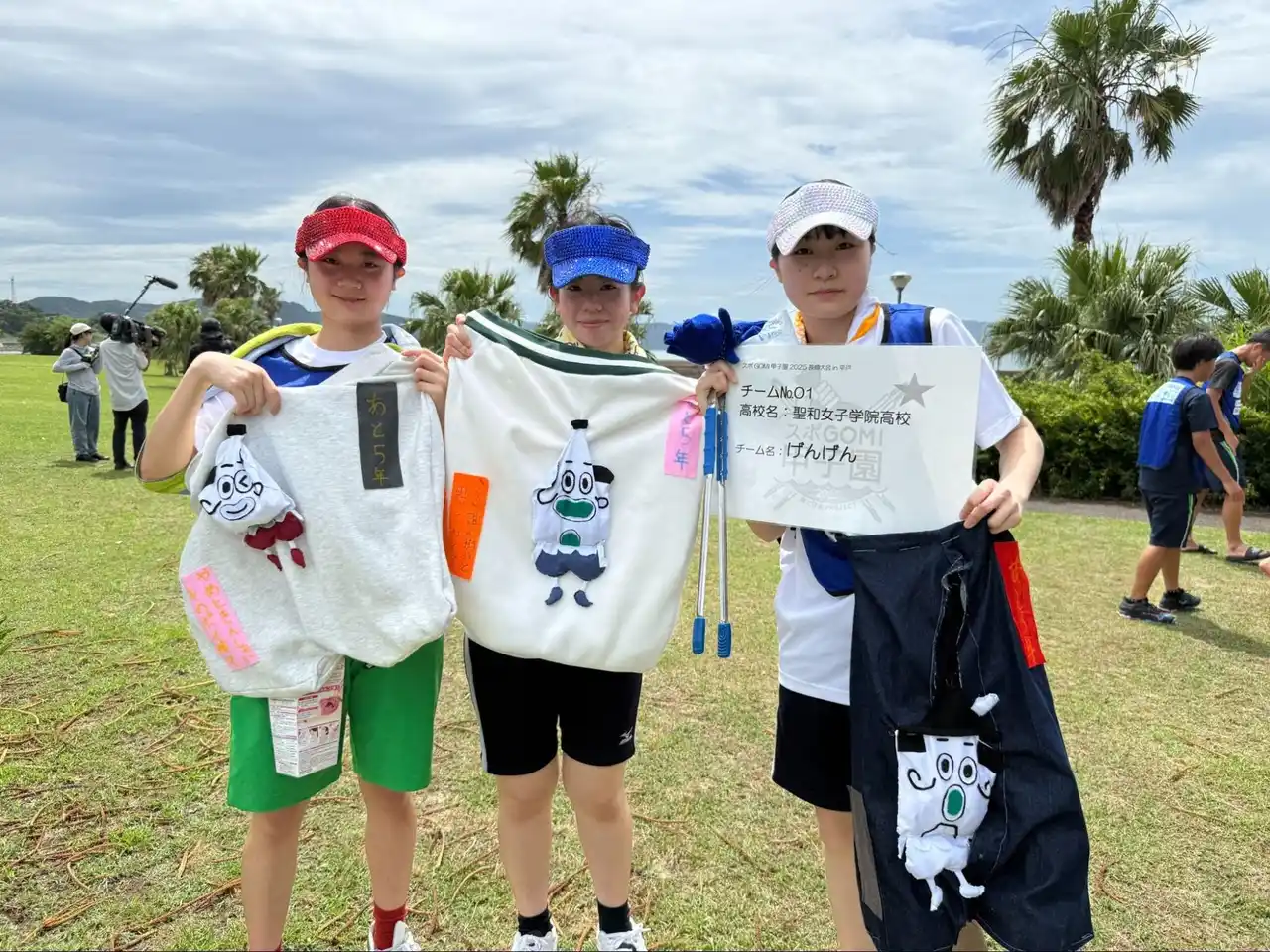 結果、佐世保工業高校「ダストダッシュ団」が、ごみ総量36.53kg/5115ポイントを獲得し、準優勝チームに3094ポイント差をつけて優勝。オリジナルアイテム賞は、3年連続出場の聖和女子学院高校のチーム「げんげん」が受賞。「げんげん」は2年連続のオリジナルアイテム受賞となりました。 |