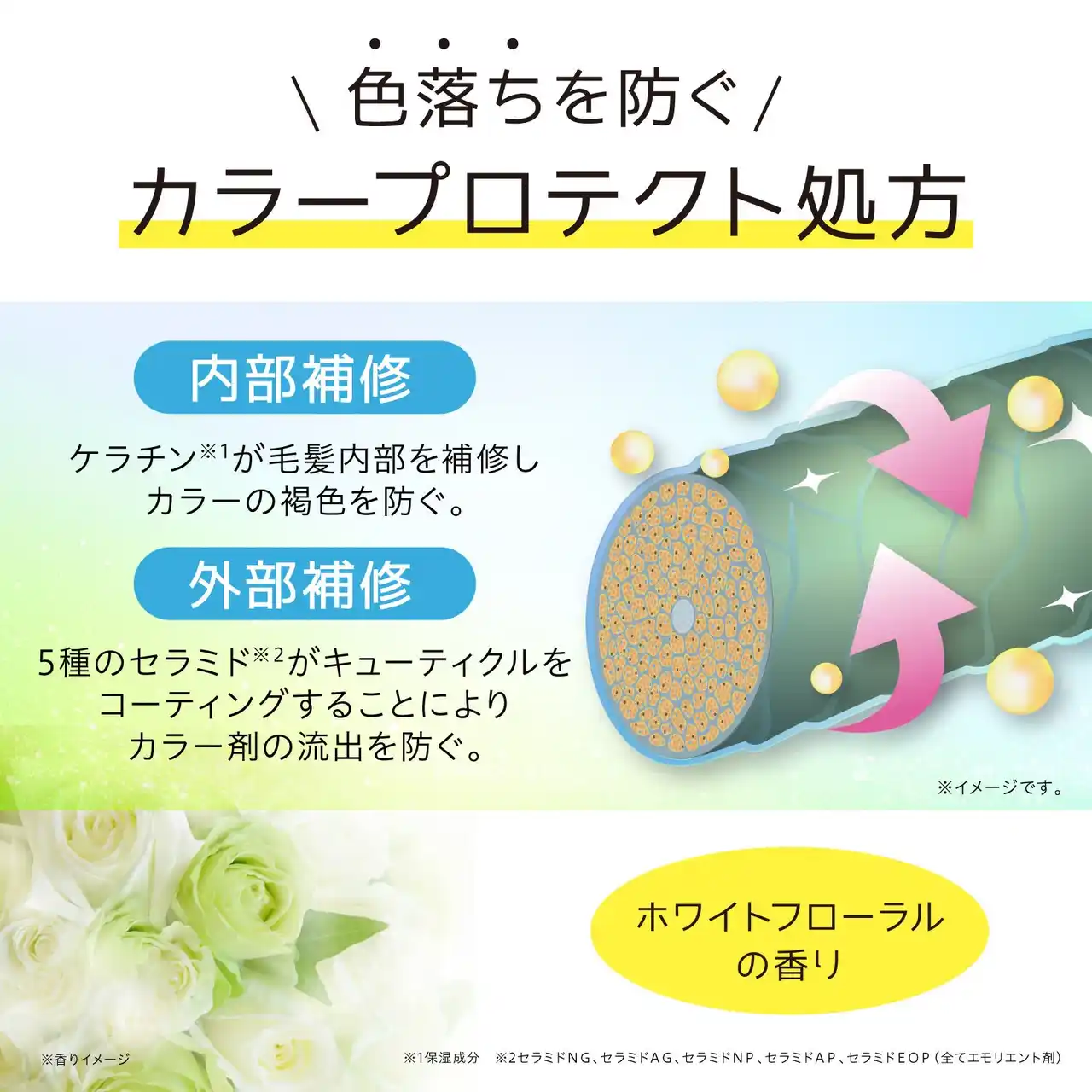 外部補修・・・5種のセラミド※8がキューティクルをコーティングし、乾燥や摩擦によるダメージを防御。カラー剤の流出を防ぎます |