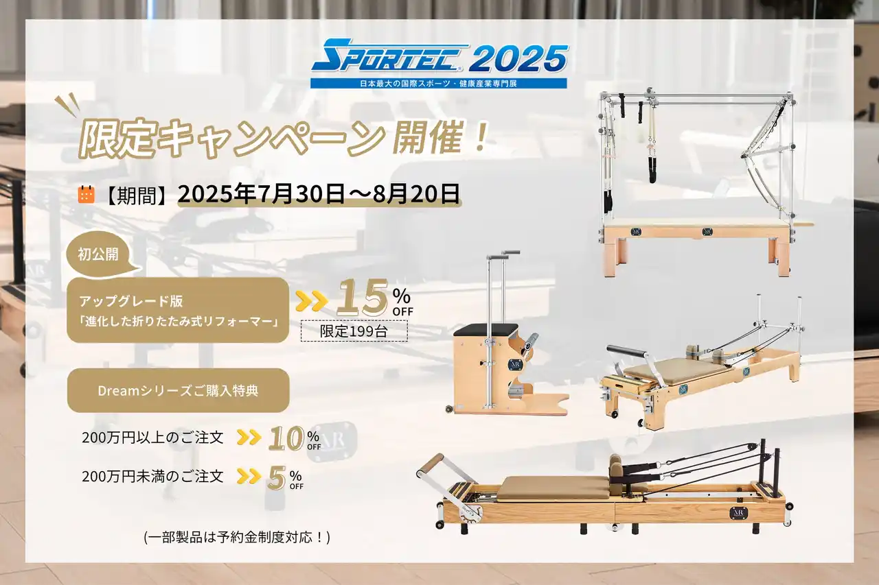 | ピラティスマシン専門ブランド「Miyabi Pilates」は、2025年7月30日(水)~8月1日(金)に東京ビッグサイトで開催された日本最大級のスポーツ・健康産業総合展「SPORTEC」に出展いたしました。 | |||
