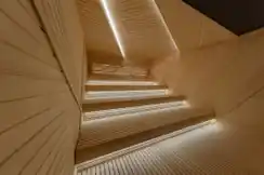 サウナ施設のイメージを覆すような斬新で近未来的なデザインのパブリックサウナ室をはじめ、隣接するシャワールーム、水風呂、リラクゼーションエリアは照明を控えめにし、薄暗い空間でゆったりとくつろげるようにするなど、細部に至るまでデザインを徹底的にこだわり、至極の非日常空間を演出しています。受賞作品の詳細情報については以下のURLよりご覧頂けます。 |