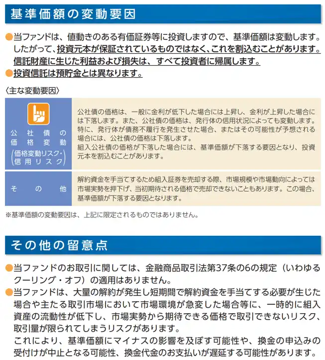 投資信託は値動きのある有価証券等に投資しますので、基準価額は大きく変動します。したがって、投資元本が保証されているものではありません。信託財産に生じた利益および損失はすべて投資者に帰属します。投資信託は預貯金とは異なります。 |