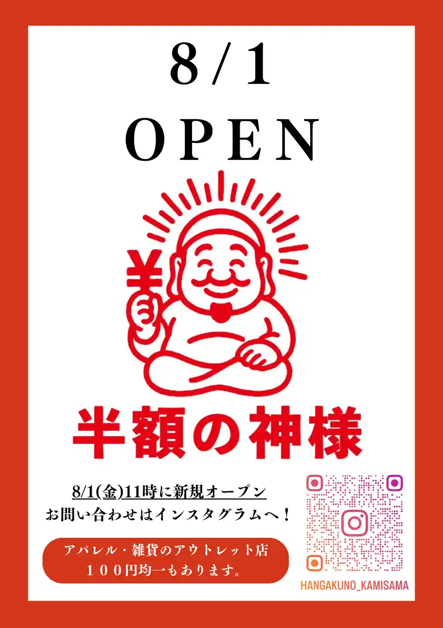 「半額の神様」は、倉庫に眠る新品・良品の商品たちに再びスポットライトを当て、破格の価格で提供するアウトレット専門ショップです。 中心となるのが50%以上のディスカウント商品。まるで宝探しのようなワクワク感の中で、掘り出し物との出会いを楽しんでいただけます。 |