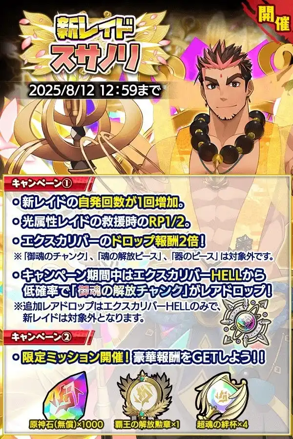 「スサノリ」の自発回数が増加、同属性レイド救援時のRP半減、 |