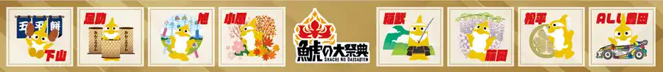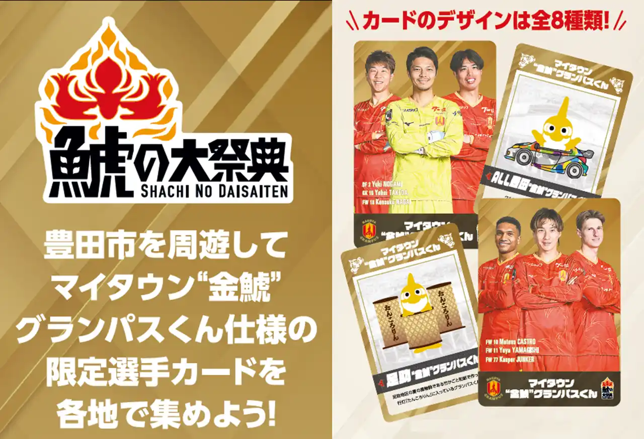 豊田市は、相互支援協定を締結している名古屋グランパスと共働で、2025年8月に名古屋グランパスが主催する「鯱の大祭典」の連携企画として、地域ごとの特徴を生かしたご当地デザインの「マイタウン金鯱グランパスくん」を制作しました。 |