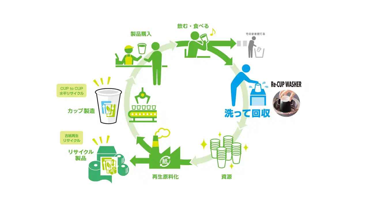 (カップ洗浄機「Re-CUP WASHER」、再生パルプ配合紙コップなど) |