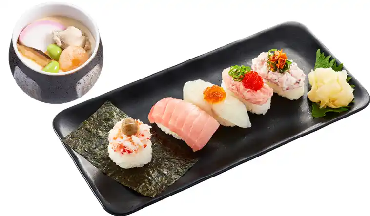 旬ネタ!期間限定5貫セット 茶碗蒸し付き 詳細 |