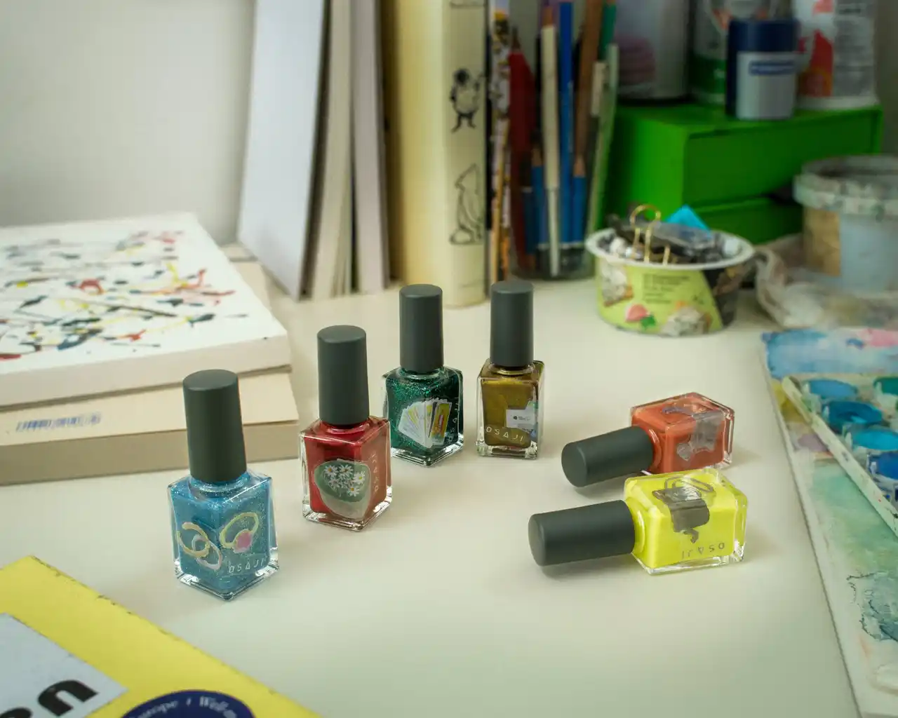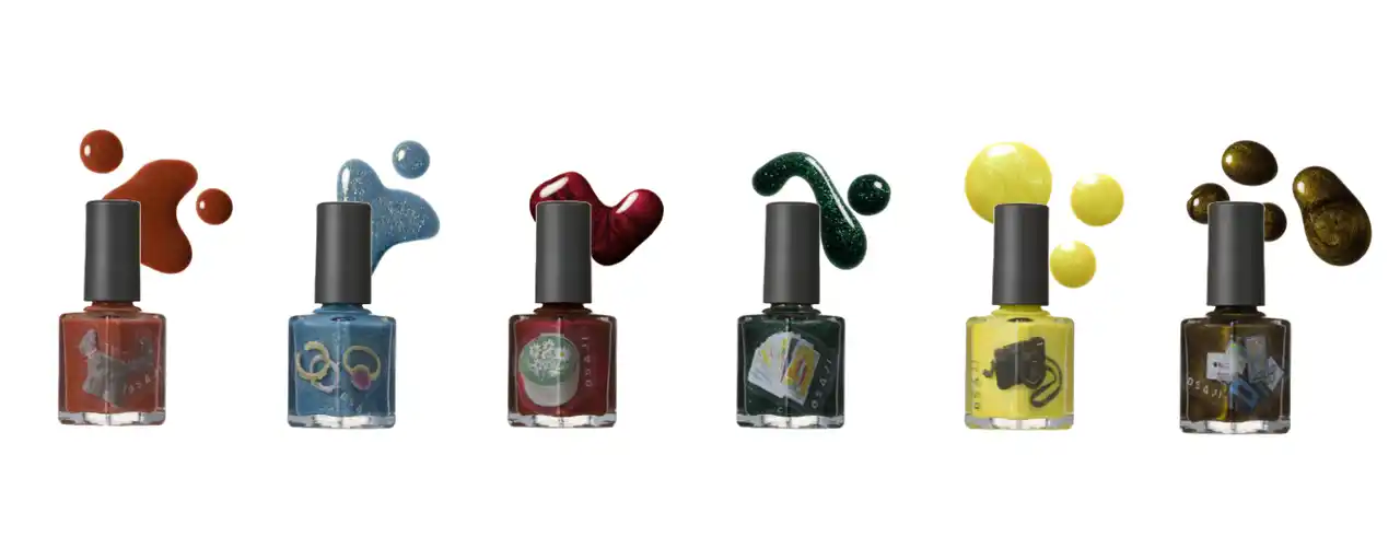 さりげないものからドラマティックなものまで、6色すべてに異なる輝きを閉じ込め、高揚感を呼び起こすようなカラーに仕上げました。快適に楽しめるよう、乾きやすさや圧迫感のなさにも配慮しています。また、美しい光沢感とともに、爪のうるおいを守ります。イラストレーター・よしいちひろ氏によるデザインモチーフは、誰かにとってのヒントのかけらとなったものたちをイメージしたものです。 |