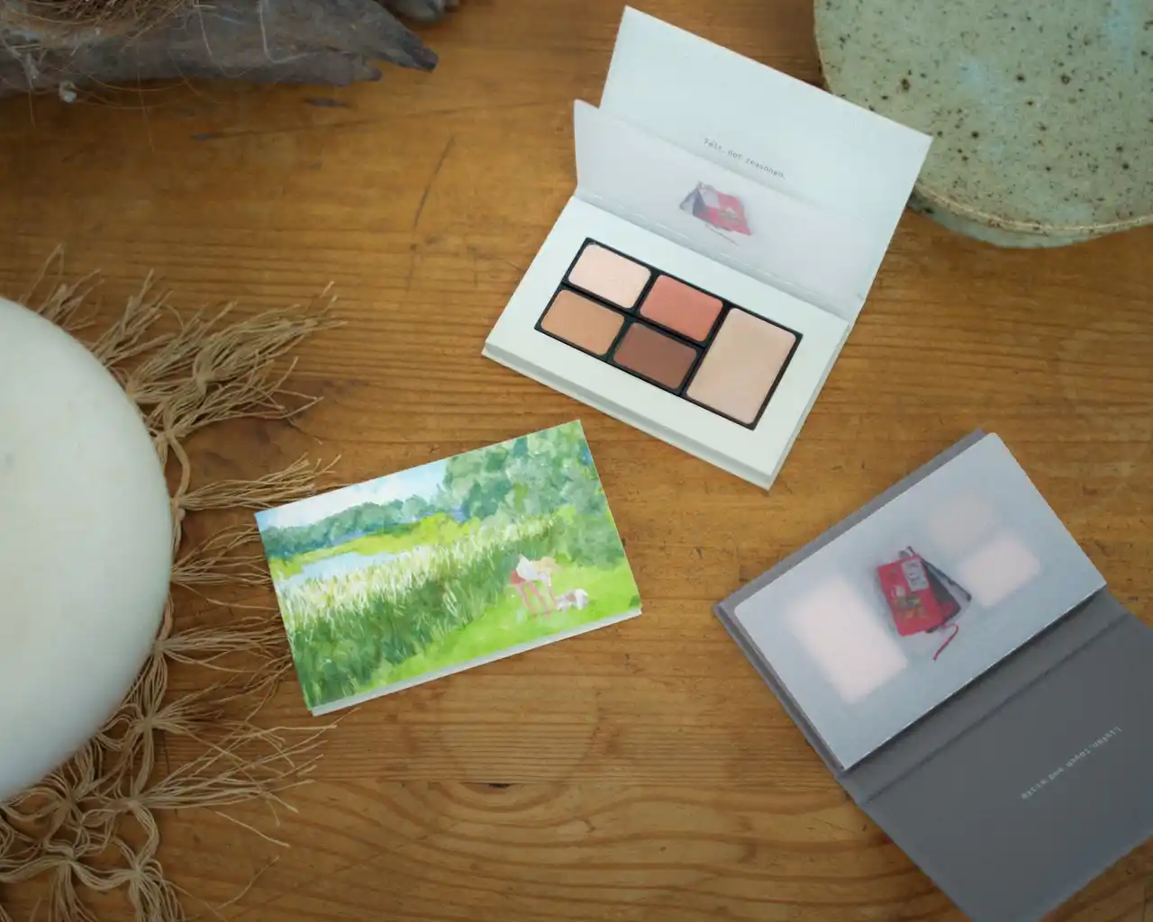 自由な強度で立体感や血色感を引き立てながら、重ねて、ずらして、多彩な表情をお楽しみください。イラストレーター・よしいちひろ氏が描く風景を施した、アートピースのような佇まいも魅力。メイクしている間、肌荒れを防ぎながら、肌のうるおいを守ります。 |