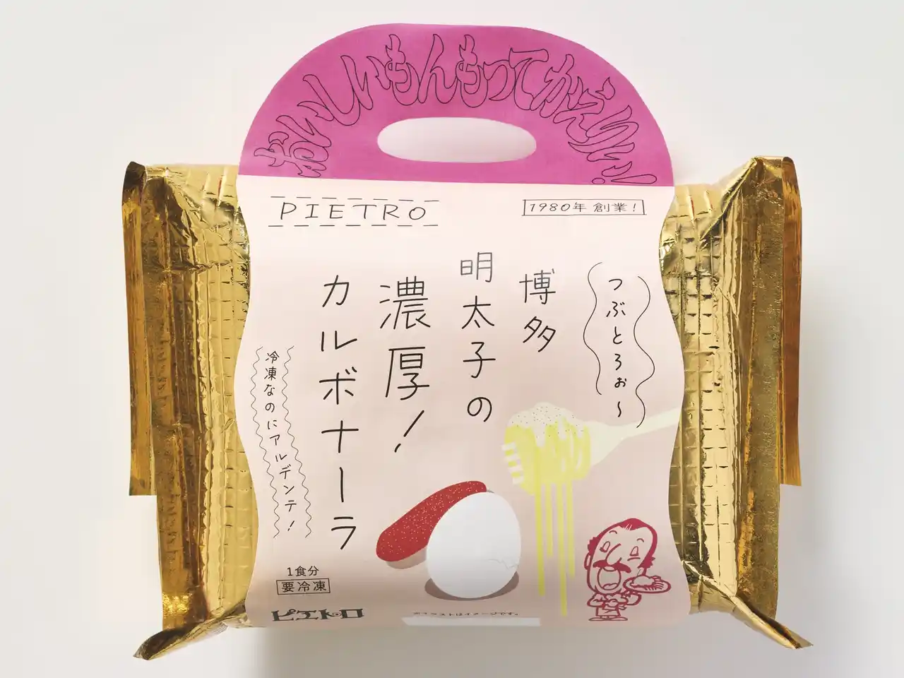 ピエトロレストランで人気のメニュー「博多明太子カルボナーラ」を、ご家庭で手軽にお楽しみいただけるようアレンジしました。ピエトロレストラン創業の地、福岡・博多の名物“辛子明太子”×カルボナーラは、一度食べるとクセになる濃厚でクリーミーなおいしさです。麺には、レストランで長年提供しているイタリアのAGNESI(アネージ)のパスタを使用。冷凍でも“アルデンテ”の食感が楽しめるよう、シェフが茹で時間や工程に工夫を凝らしました。 |
