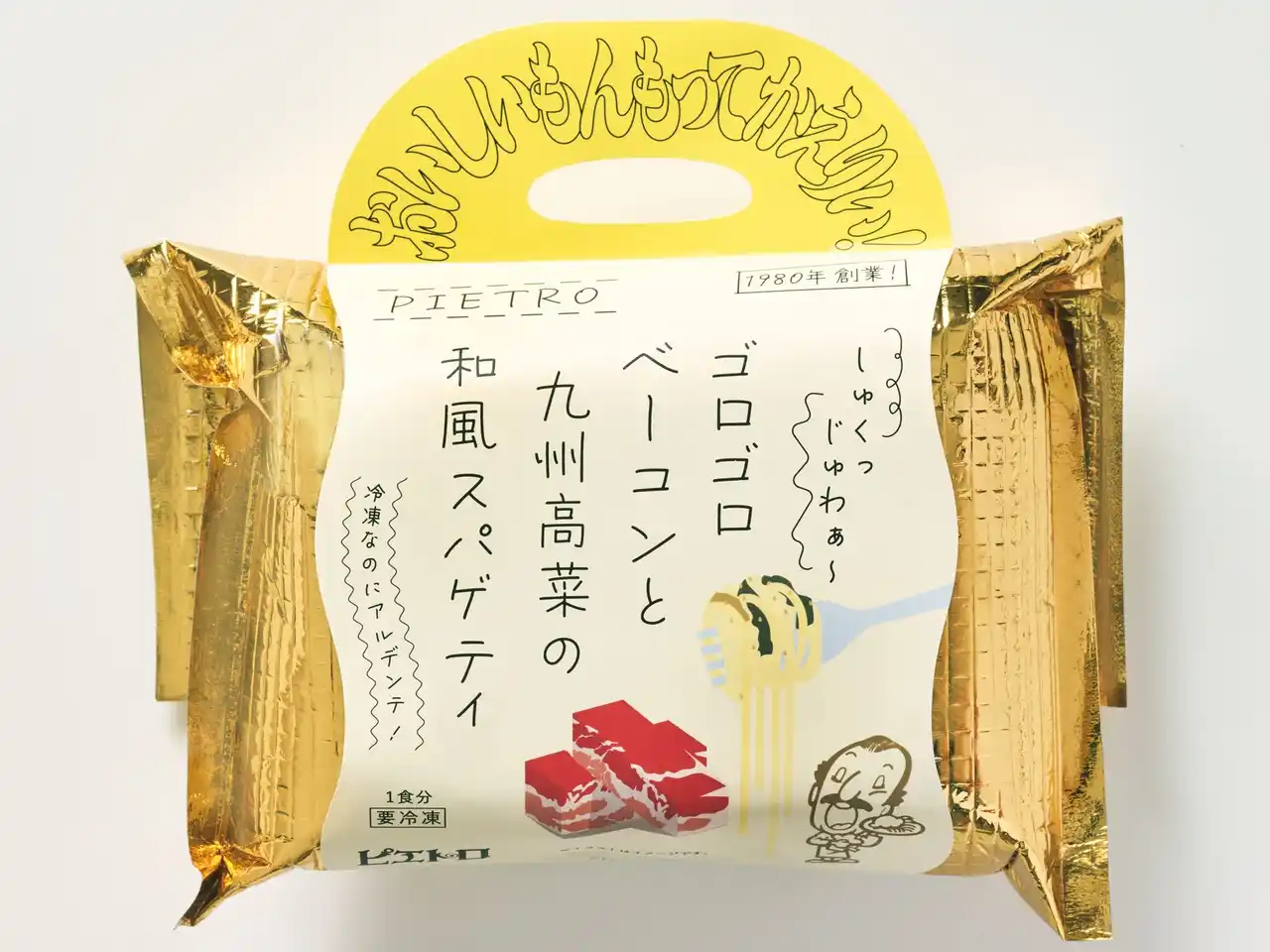 ピエトロの創業時、1980年頃は、スパゲティといえばナポリタンとミートソースが主流でした。そうした中、ピエトロは“和の食材×イタリアン”のメニューを打ち出し、その中でも高菜とベーコンは人気の高い組み合わせでした。冷凍ならではの再現性で、ごろっとしたベーコンと九州産高菜の食感を楽しめます。お好みできざみのりをかけてお召し上がりください。 |