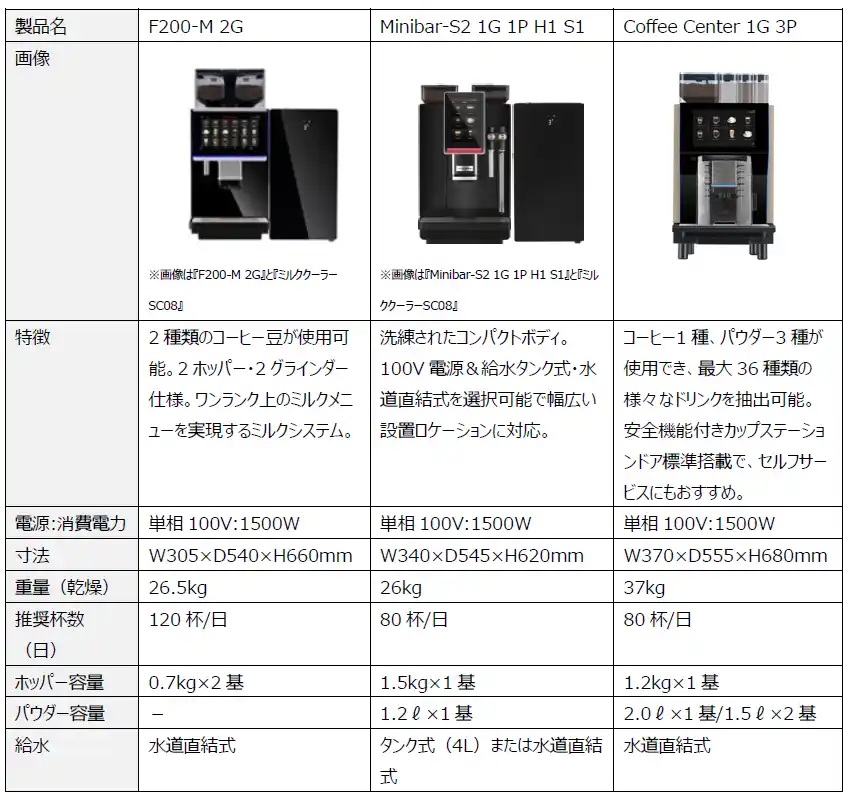 コーヒー関連機器製造販売、メンテナンス事業などを行うラッキーコーヒーマシン株式会社(本社:兵庫県神戸市、代表取締役社長:平岡将志)は、Dr. Coffee(ドクターコーヒー)の全自動エスプレッソマシン『F200-M 2G(以下F200)』を7月28日に発売いたしました。本製品の発売により、2024年から取り扱いを開始した業務用全自動コーヒーマシンブランド・Dr.Coffeeのコーヒーマシンラインアップは『Coffee Center』『Minibar』と本製品の全3機種となり、ホテル・レストラン・カフェ・オフィス関連のお客さまのニーズが特に強い推奨杯数80杯~120杯ゾーンに対して、提供メニューや提供方法、設置場所などの幅広いニーズにお応えしていきます。 |
