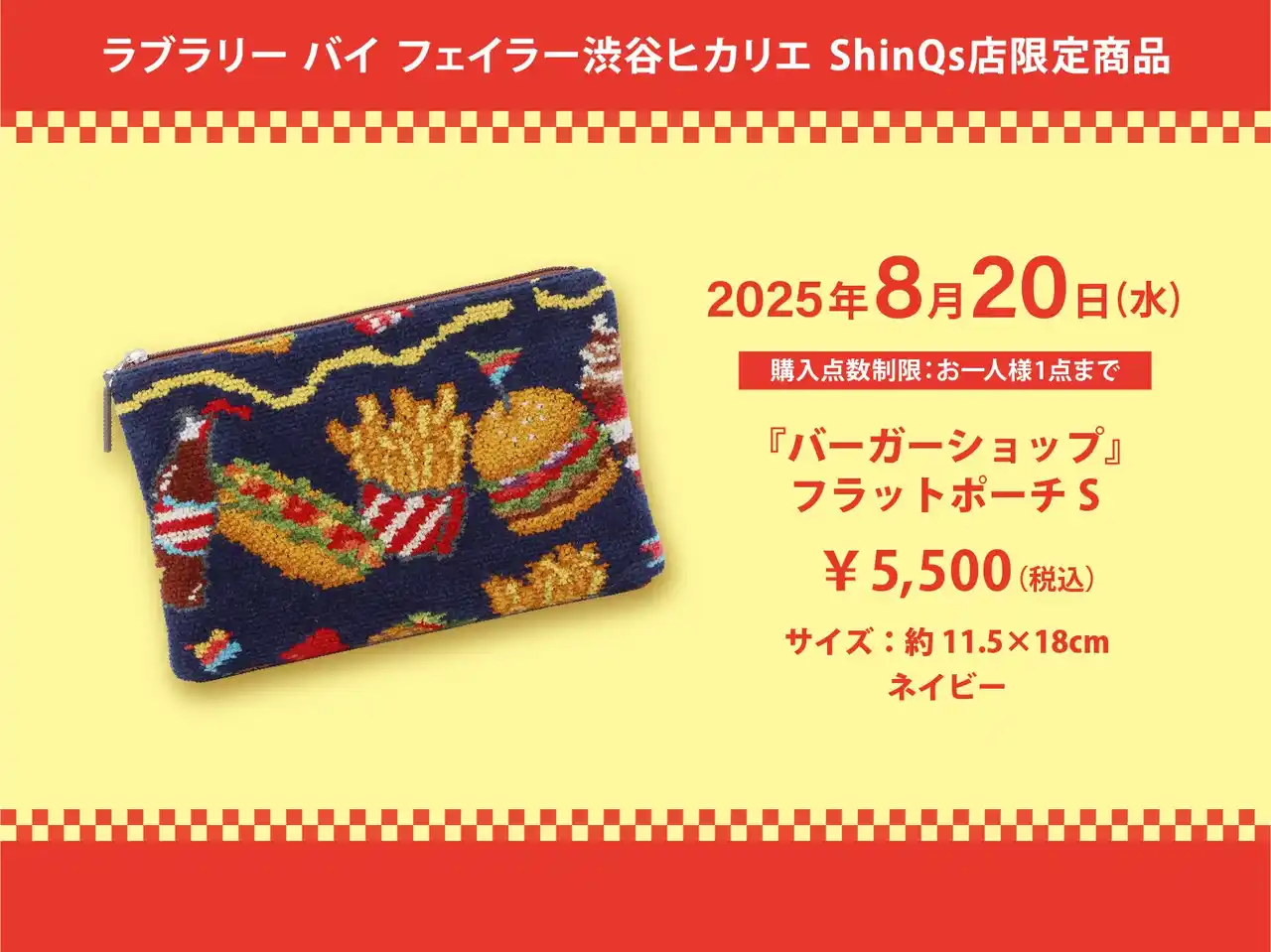 ラブラリー バイ フェイラー10周年を記念して復刻&色替した人気デザイン『バーガーショップ』から、ラブラリー バイ フェイラー渋谷ヒカリエ ShinQs店限定のポーチが登場! |